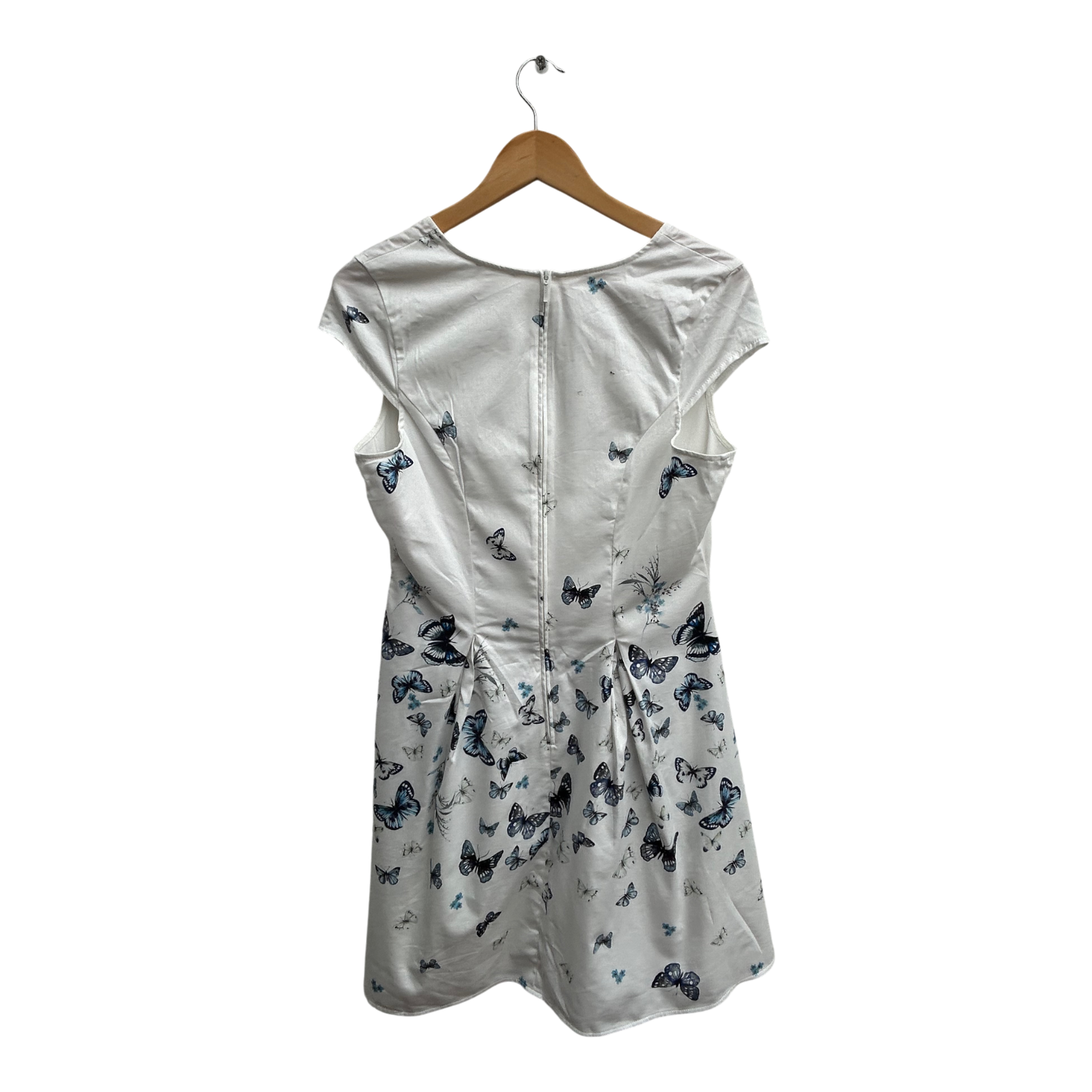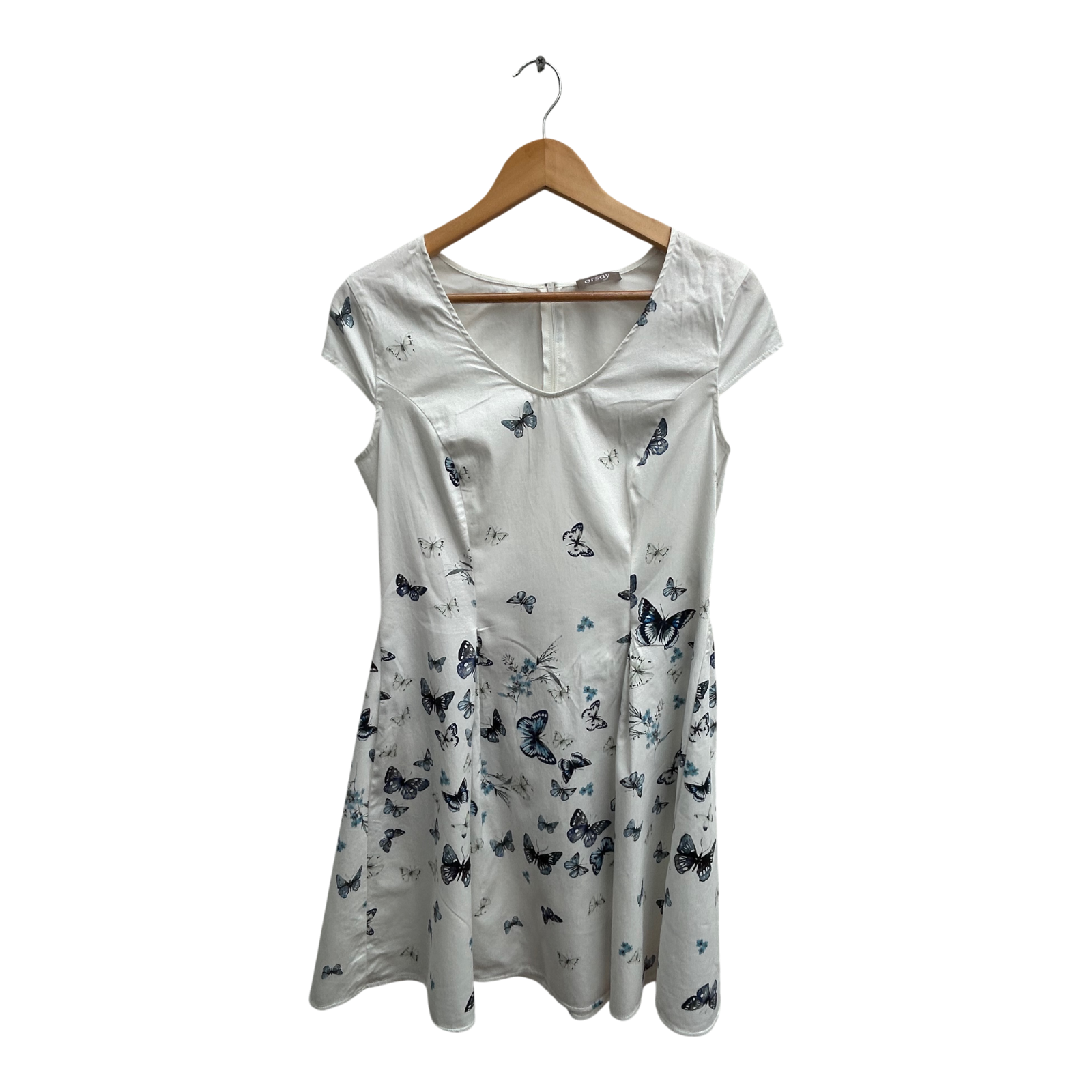 Orsay Kleid Damen Gr 42 Weiß Blau Schmetterlinge Baumwolle Elegant Sommerkleid