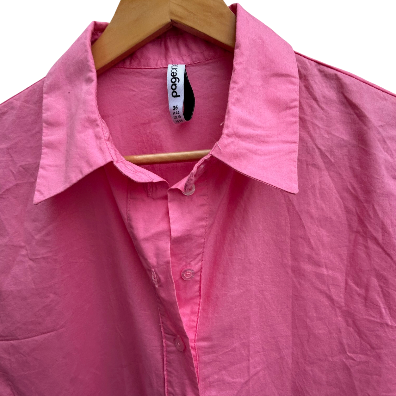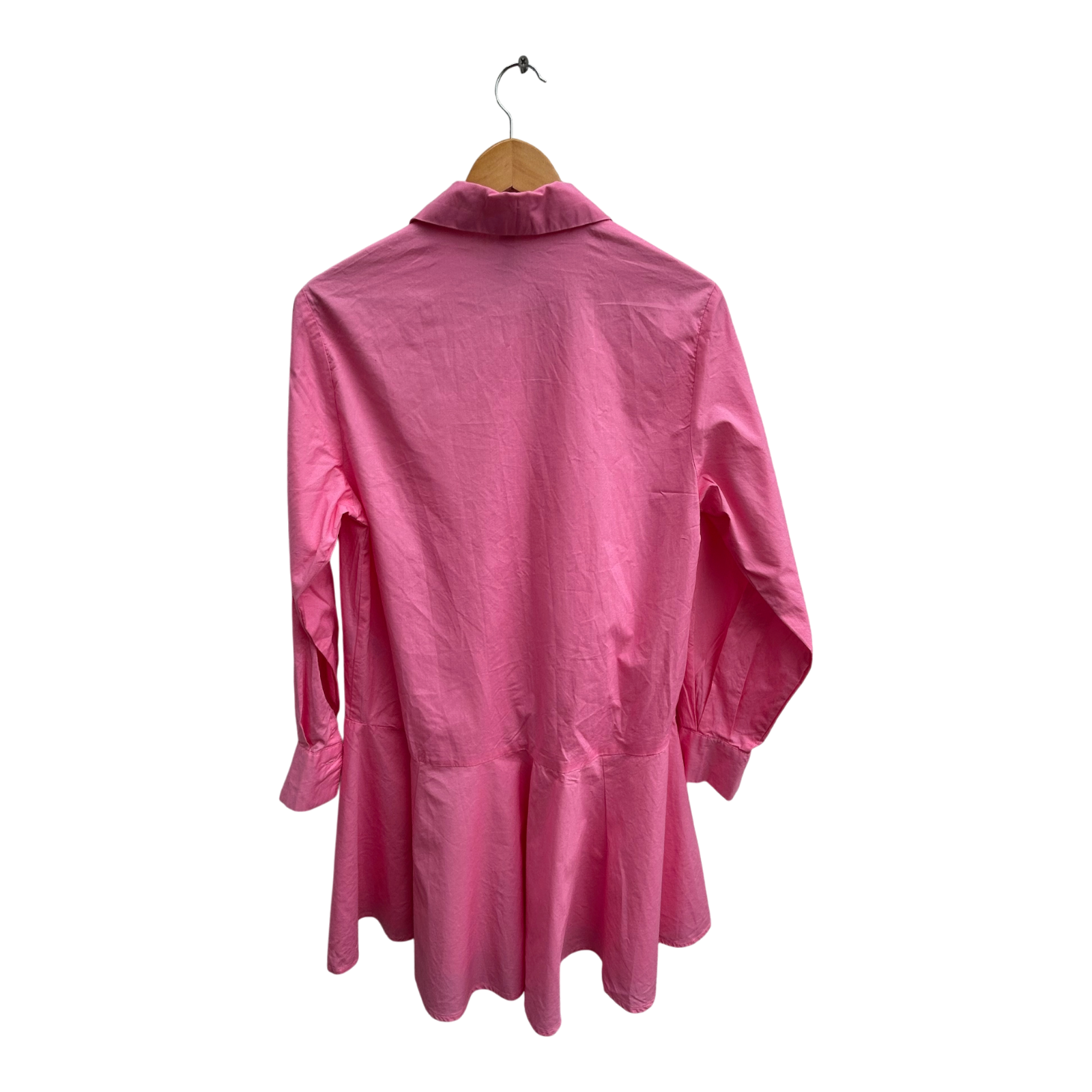 Ein leichtes Sommerkleid von Page One in Größe 36 aus 100% Baumwolle. Das ungefütterte Kleid trägt sich angenehm und luftig und hat einen femininen Hemdblusenstil mit typischer Knopfleiste und leicht ausgestelltem Rüschenvolant am Saum. Die Brustweite beträgt 50 cm, die Taille liegt bei 48 cm und die Länge misst 88 cm. Durch die langen Ärmel wirkt es gleichzeitig modisch und lässig und eignet sich ideal für warme Tage oder den Urlaub ☀️. Der Zustand ist sehr gut und das Kleid zeigt eine schöne, kräftige Pinknuance.