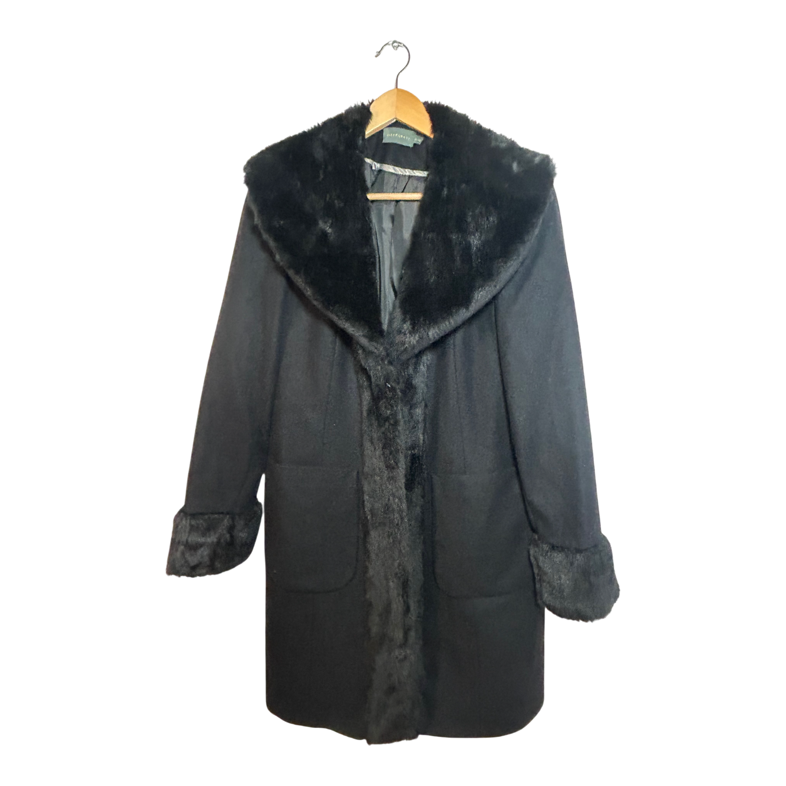 Paraphrase Mantel Damen Gr 40 Schwarz Wollmantel Fake Fur Fellkragen Elegant Winter