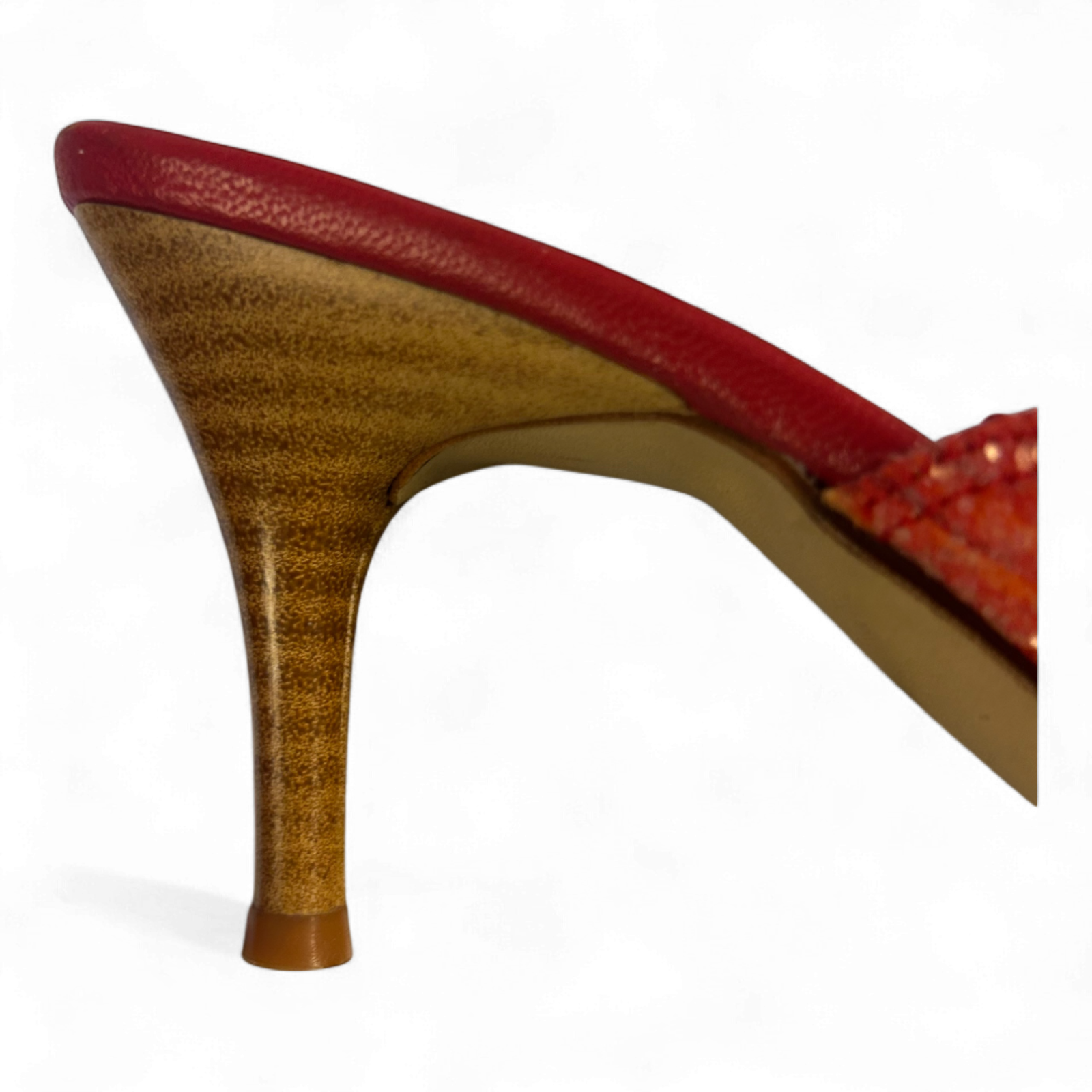 Pascual Alonso Mules Gr 37 Blumen Glitzer Print Rot Leder Innensohle Absatzschuhe