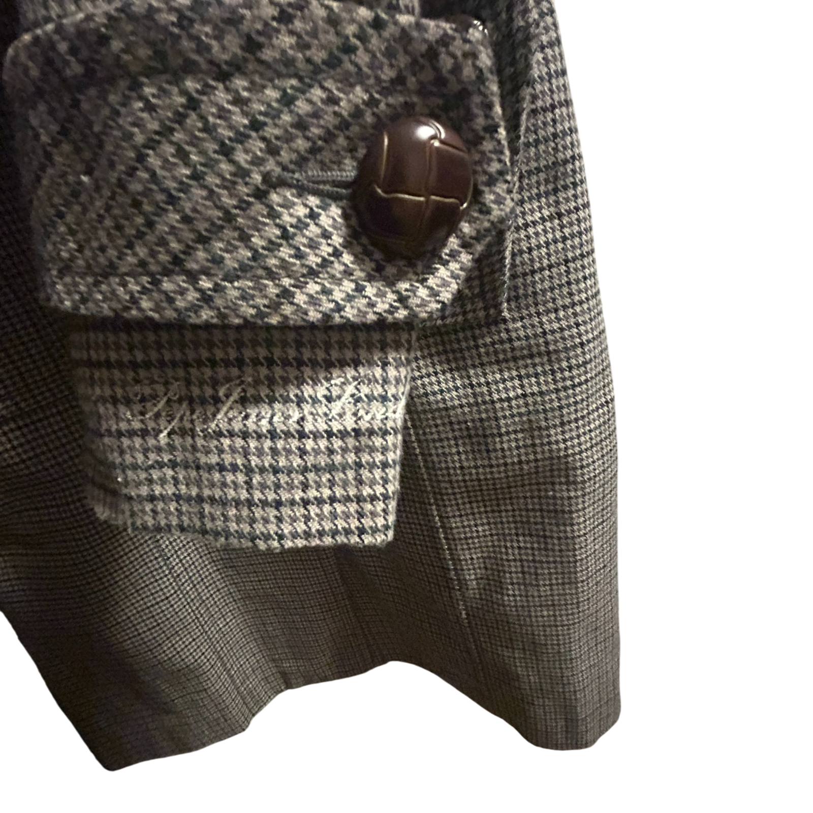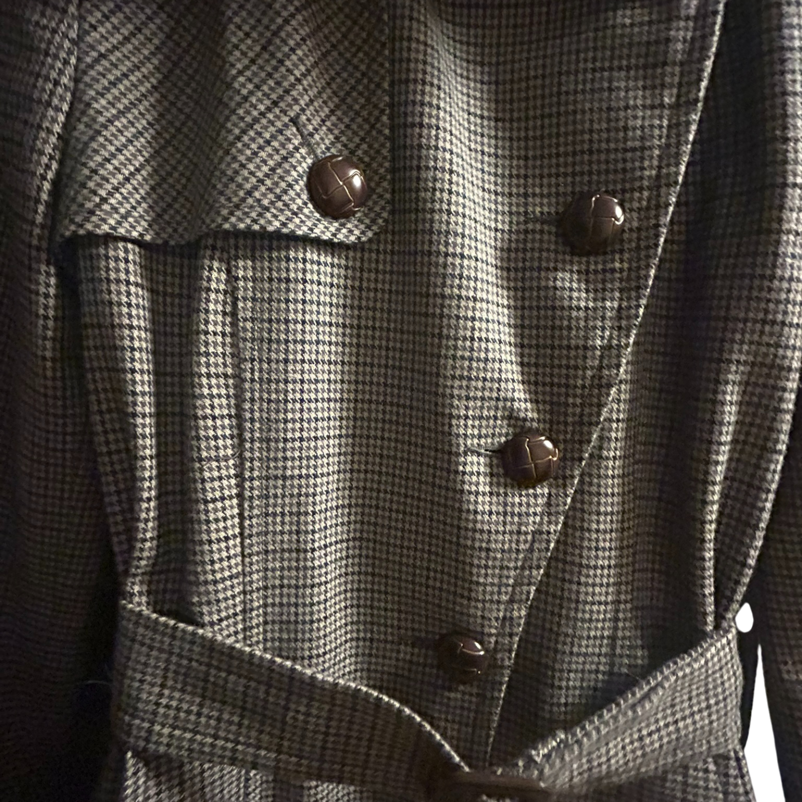 Dieser elegante Trenchcoat von Pepe Jeans London in Größe S verbindet klassisches Design mit einem zeitlosen Hahnentrittmuster in Beige, Schwarz und Dunkelblau. Die doppelreihige Front, die markanten Schulterriegel, die Ärmelriegel und der Taillengürtel sorgen für eine typisch britische Silhouette. Die dunkelbraunen Vintage-Knöpfe setzen einen stilvollen Akzent und unterstreichen die hochwertige Optik.