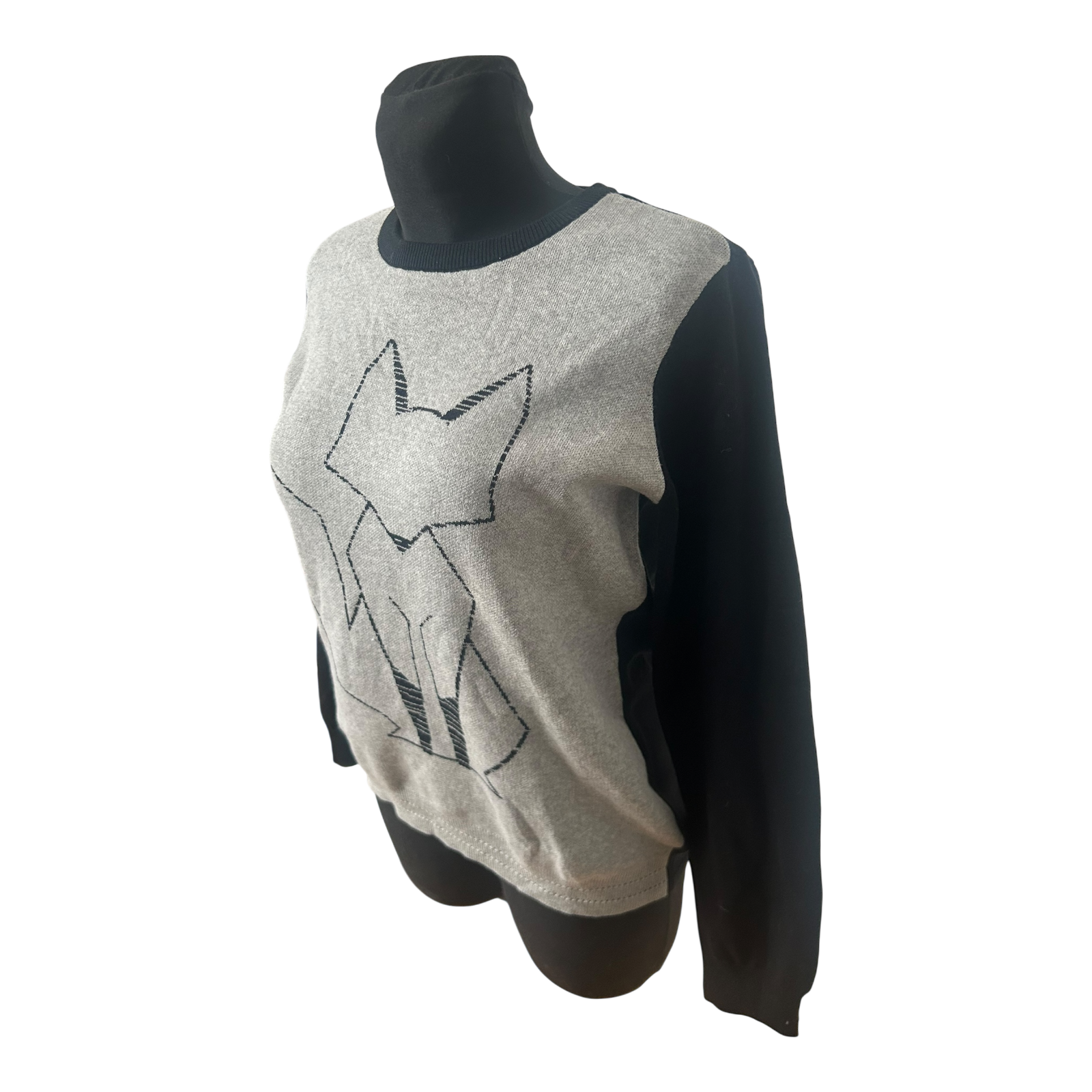Schöner Damenpullover von Pure Fashion in Größe 42 aus 100 % Baumwolle. Das Modell zeigt auf der Vorderseite ein stilisiertes Fuchsmotiv in grafischer Optik und wirkt modern sowie zugleich verspielt 🦊🤍 Die Vorderseite ist hellgrau meliert, Ärmel und Rückseite sind dunkel abgesetzt, was dem Pullover eine besondere Tiefe verleiht.