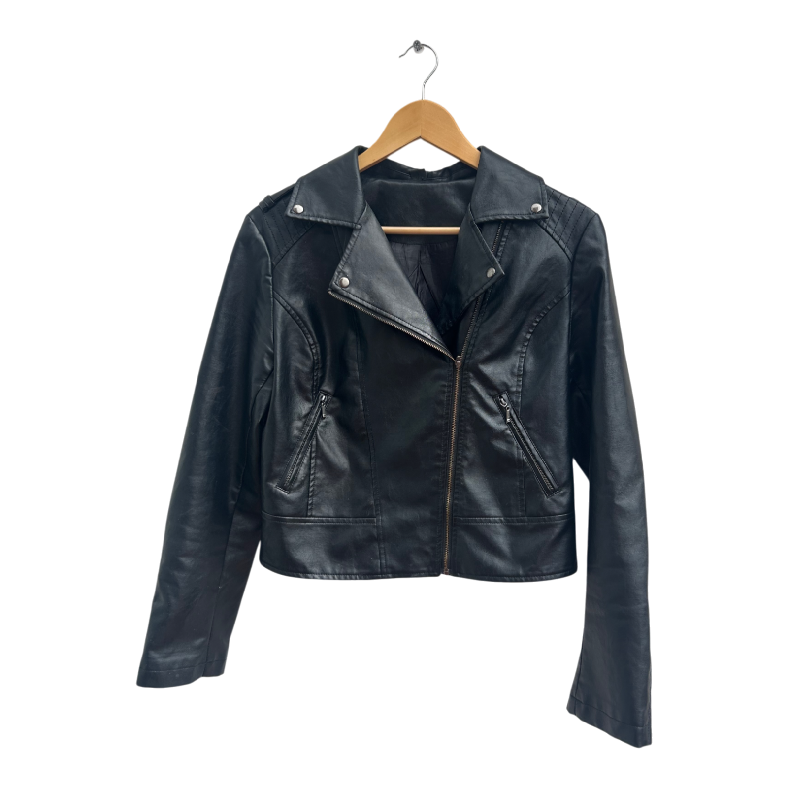 Schwarze Kunstlederjacke Gr L Unisex Bikerjacke Rocker Look Urban Style Jacke