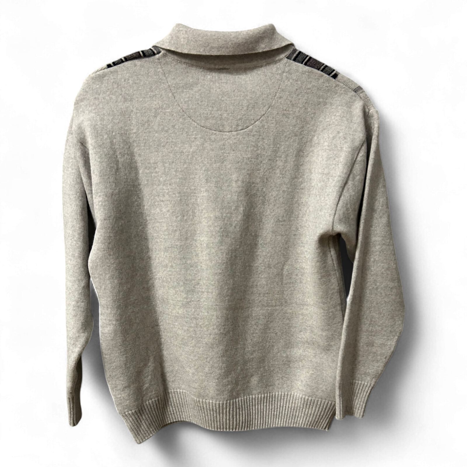 Retro Pullover Herren M Beige Braun Muster Halbzip Schurwolle Acryl Vintage Style