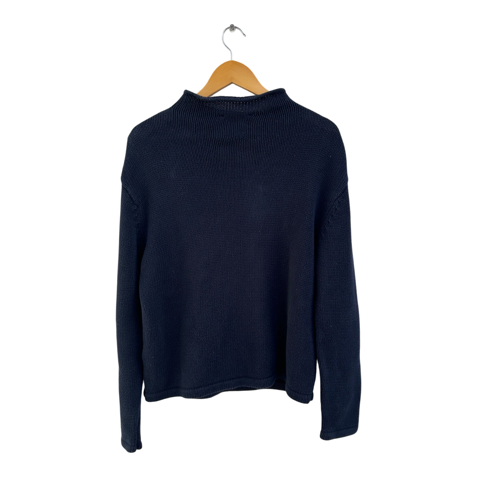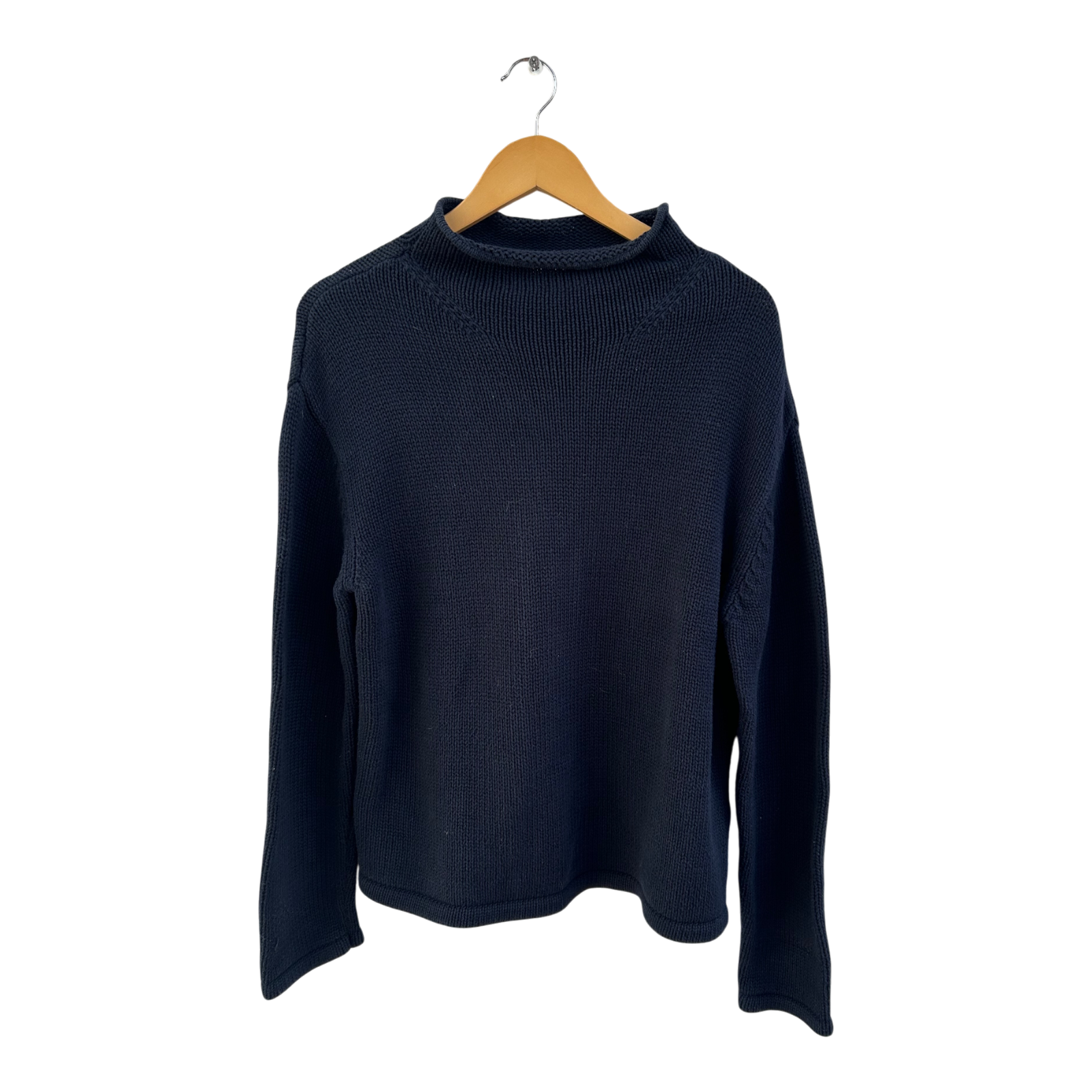 Rick Cardona Pullover Damen Gr 40 Dunkelblau Baumwolle Stehkragen Schwer Strick