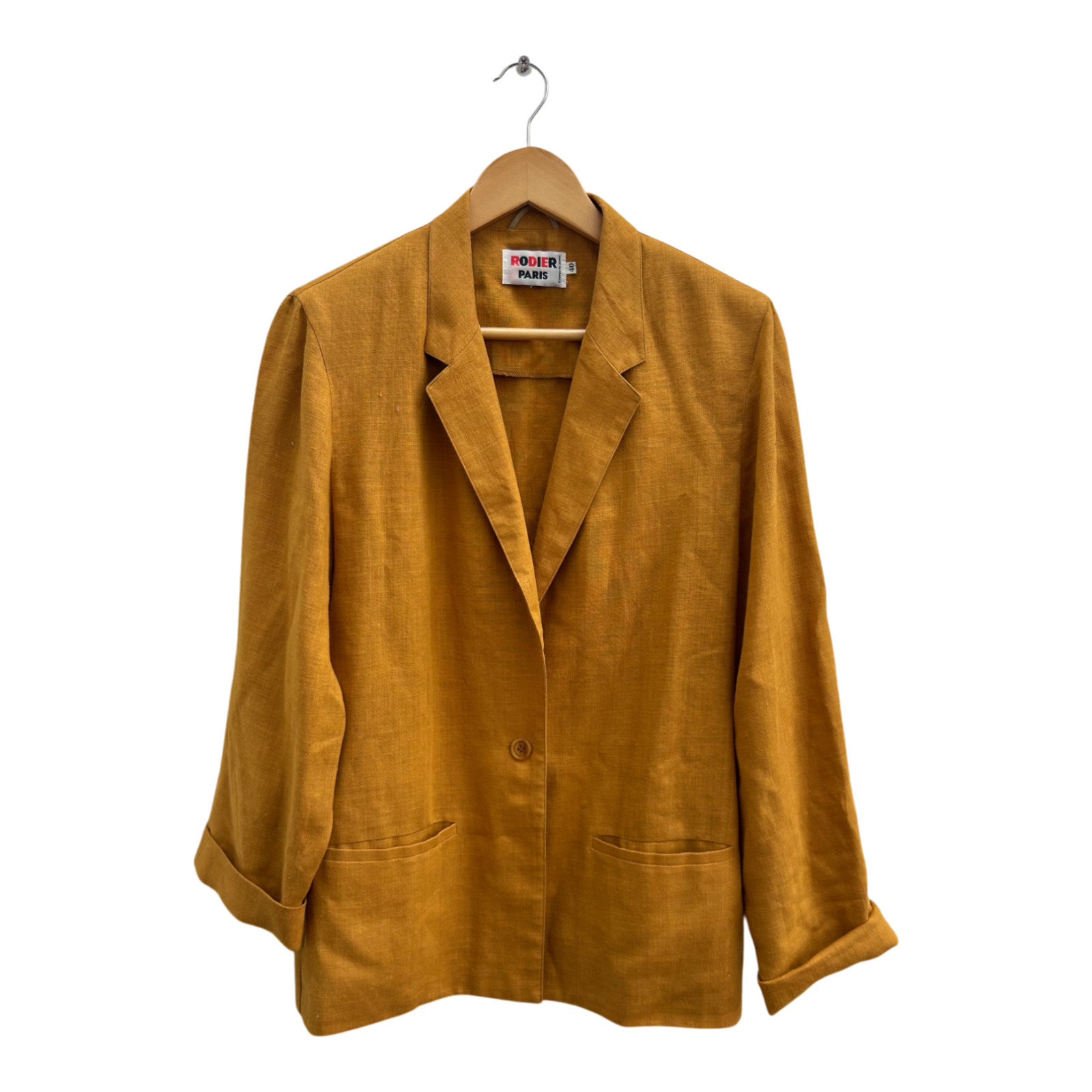 Rodier Paris Blazer Gr 40 Orange Leinen Vintage Made in France Schulterpolster Chic