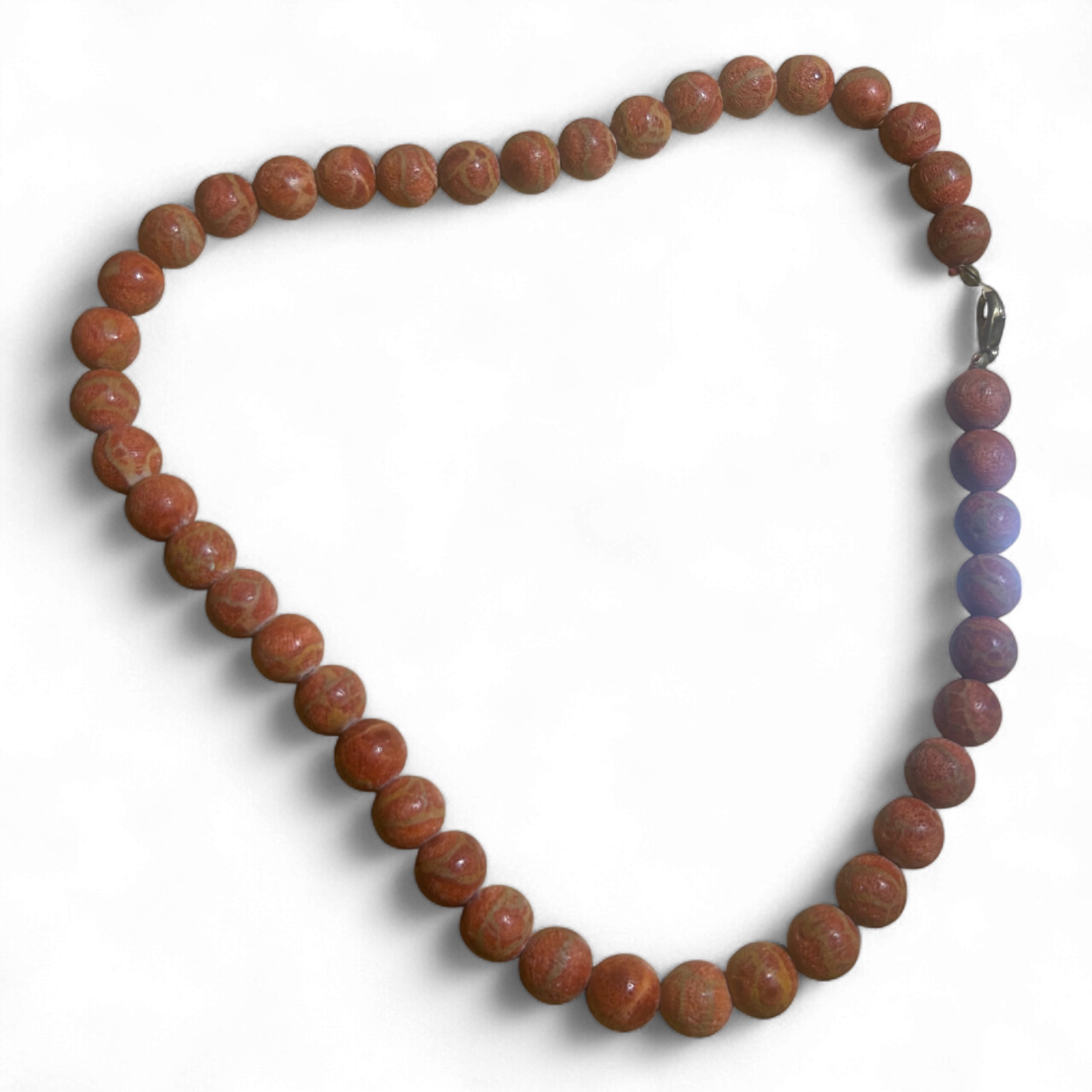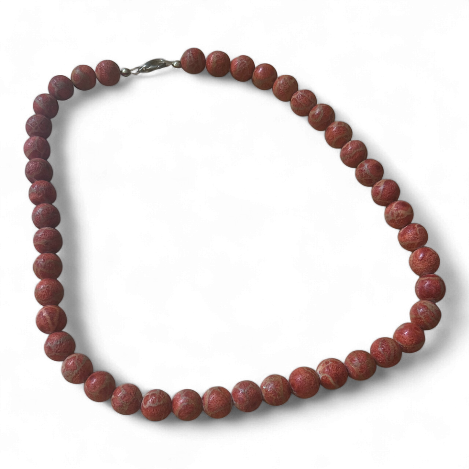 Rotbraune Halskette 45 cm Glanzkugeln Naturlook Karabinerverschluss Vintage