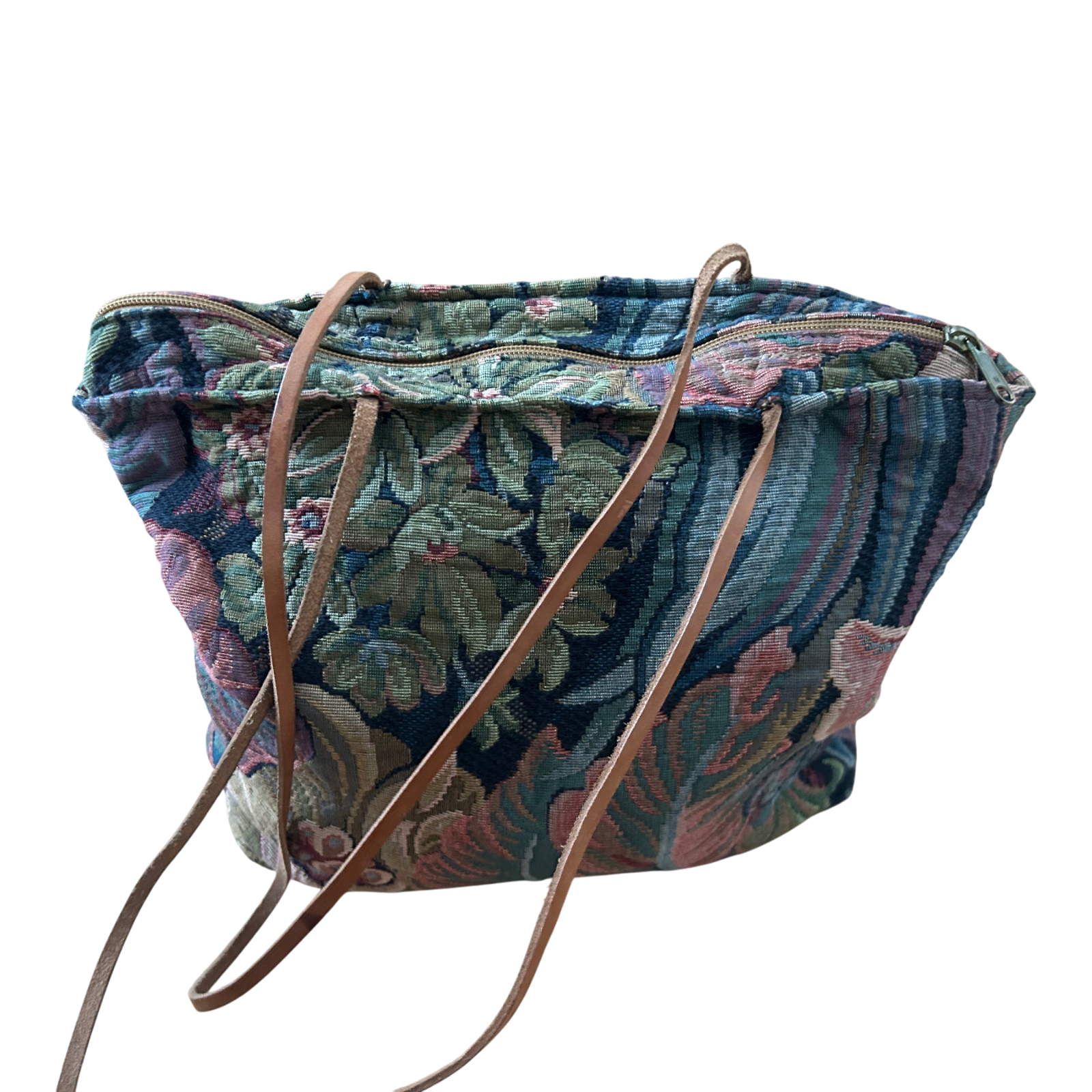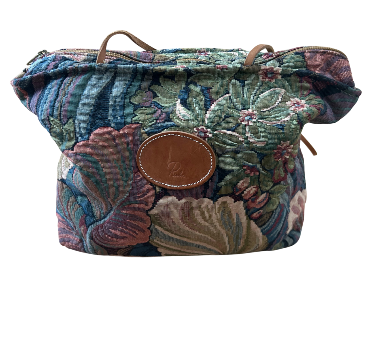 Rula Tasche Gobelin Blumen Vintage Stofftasche Echtleder Henkel Reißverschluss Elegant