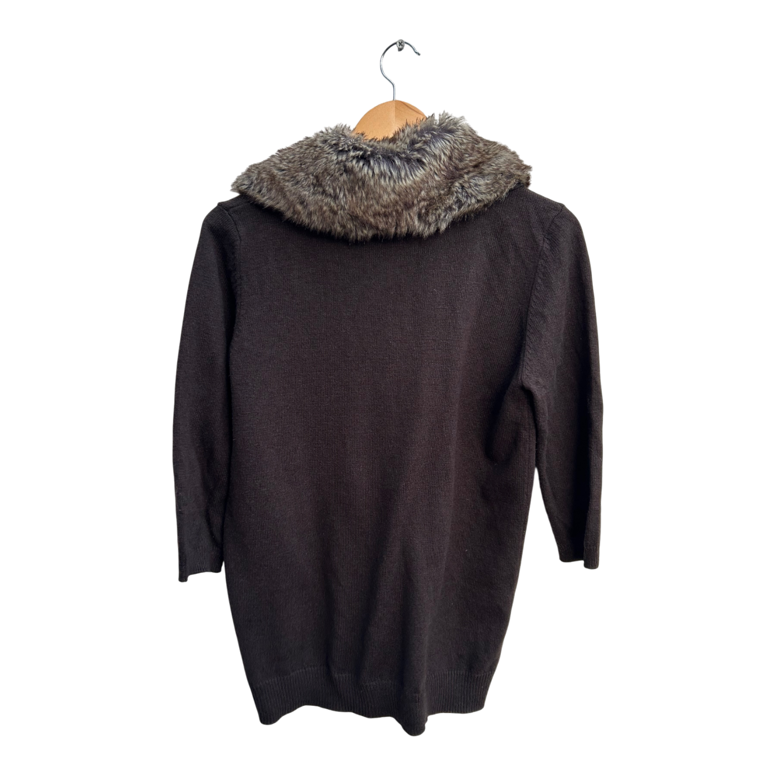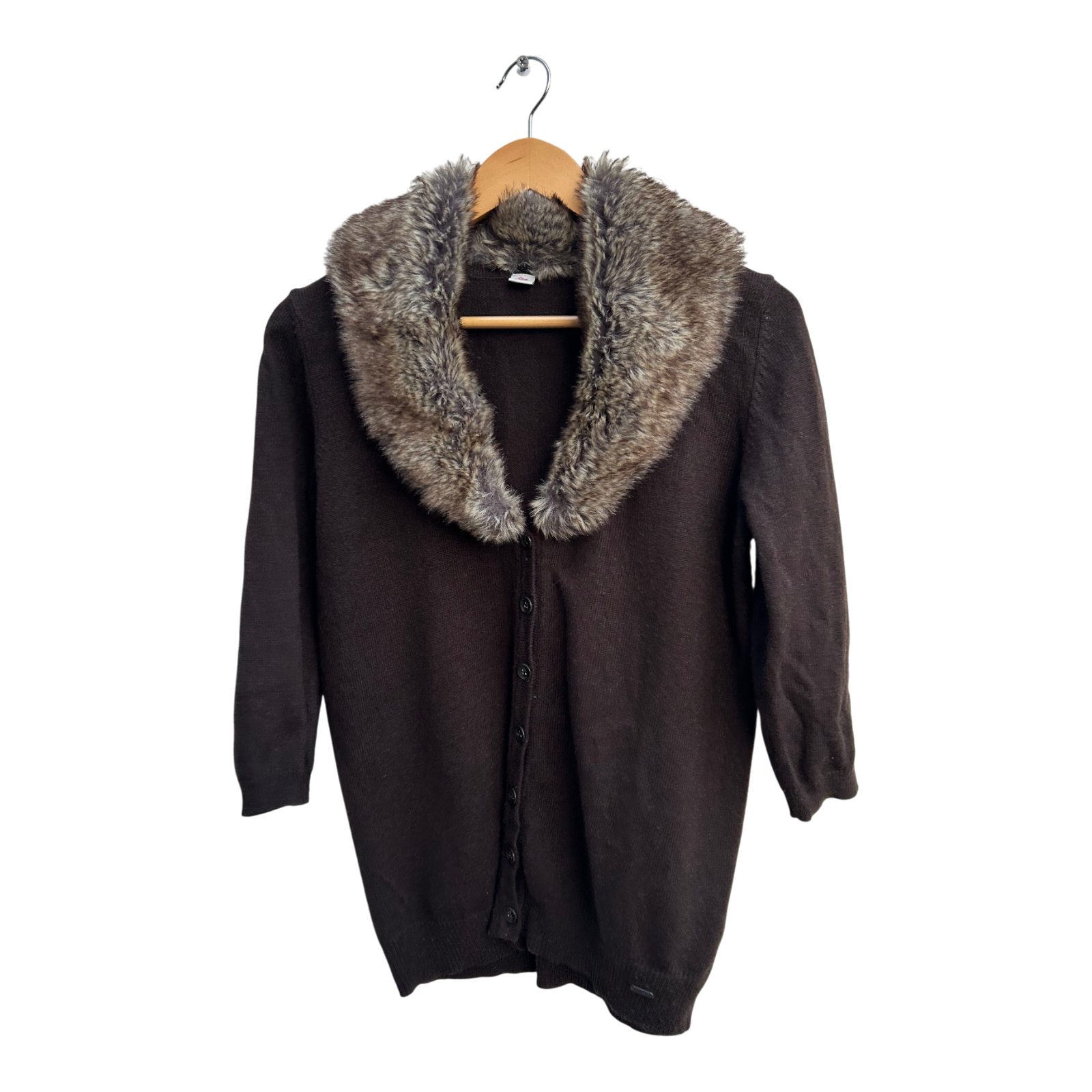 s.Oliver Strickjacke Damen 42 Braun Baumwolle Kunstfell Kragen Abnehmbar Elegant