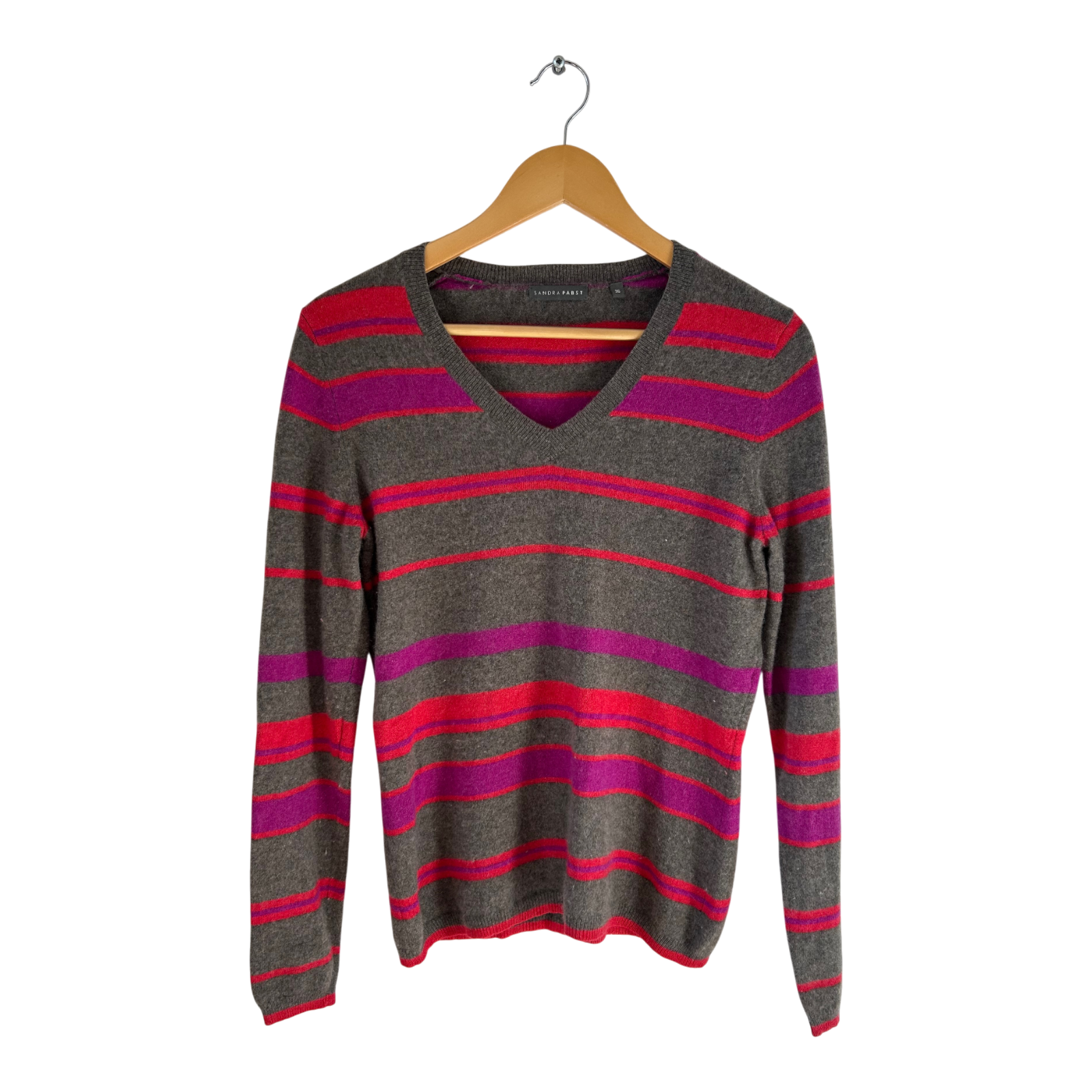 Sandra Pabst Pullover Damen Gr 36 Grau Streifen Viskosemix Kaschmiroptik Elegant