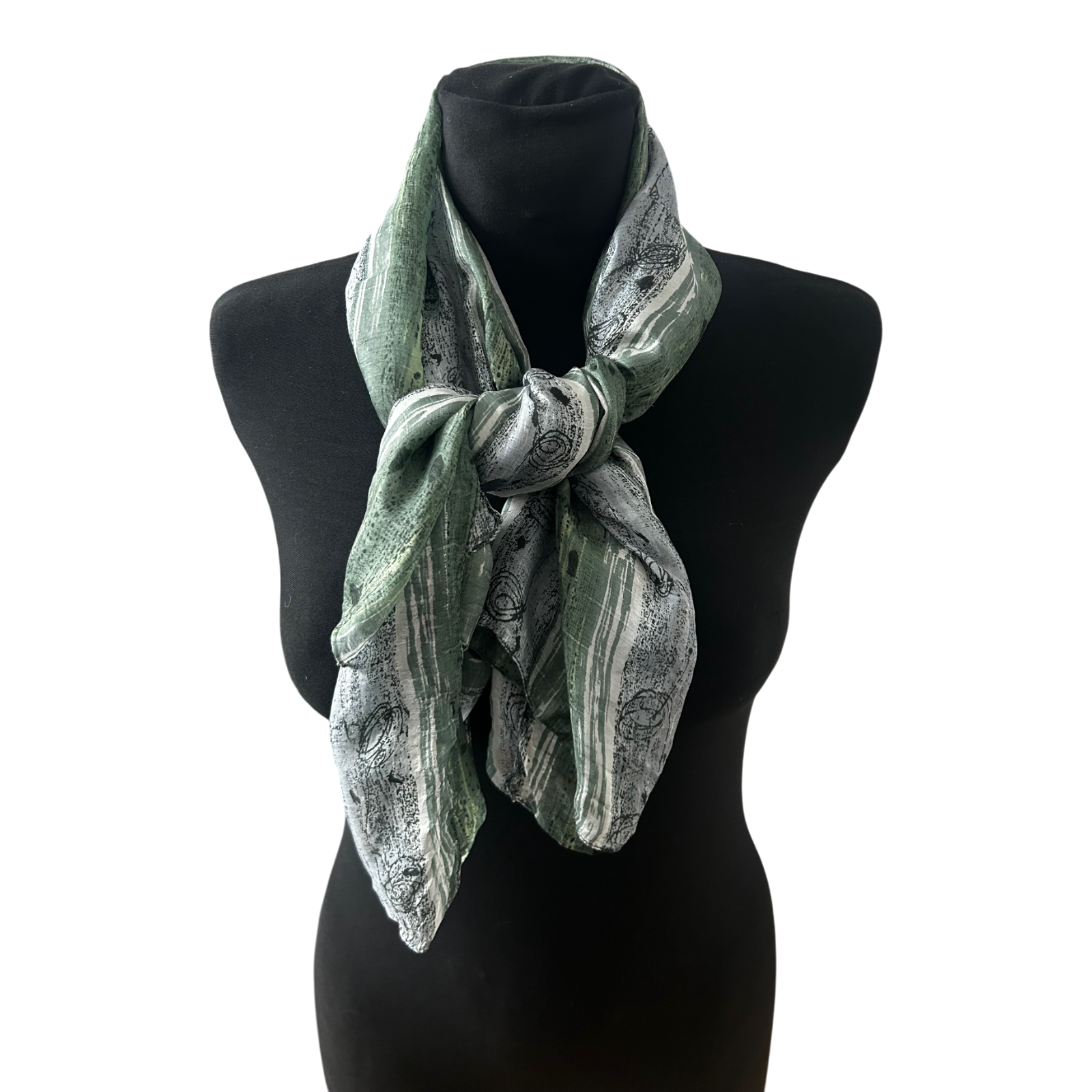 Seidentuch Damen Tuch Schal 100 x 100 Grün Grau Muster Elegant Leicht