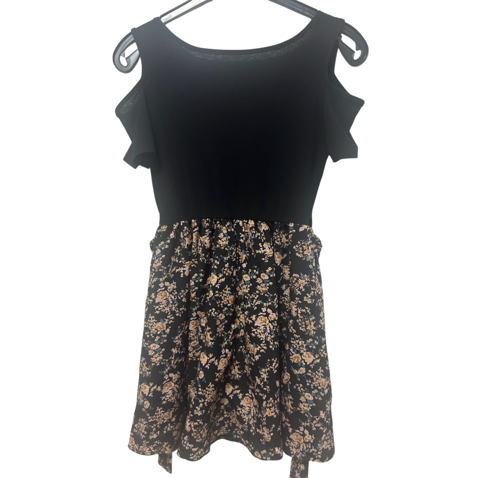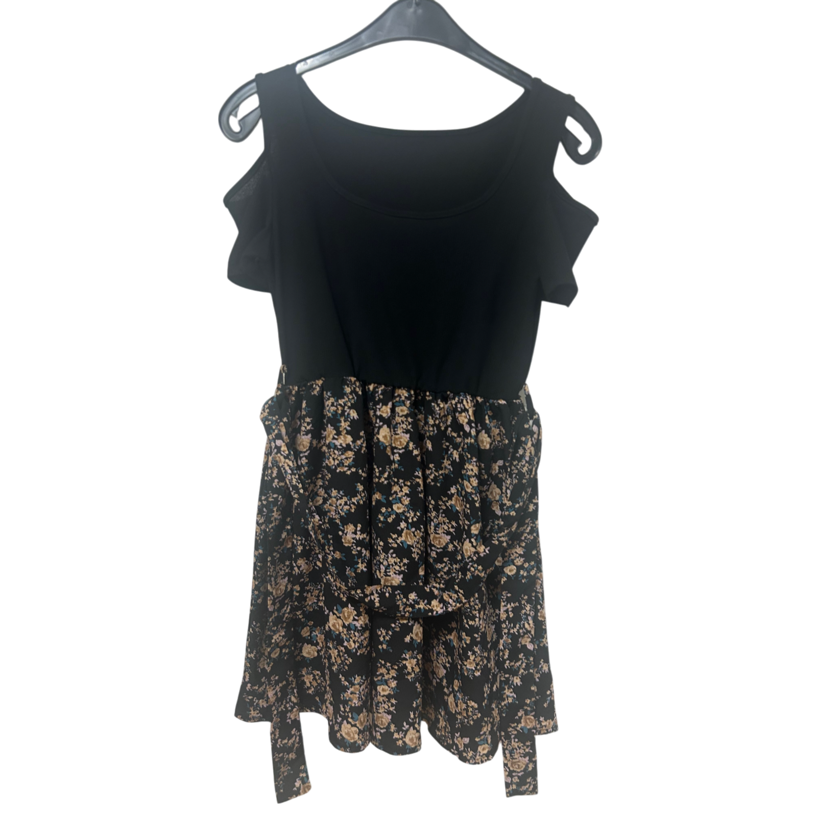 Stylisches SHEIN Kleid in Größe XS mit romantischem Blumenmuster. Das Oberteil ist in Schwarz gehalten, der Rockteil aus fließendem Stoff mit floralem Print. Schulterfreie Trägerdetails für einen femininen Look. Perfekt für Freizeit oder besondere Anlässe.
