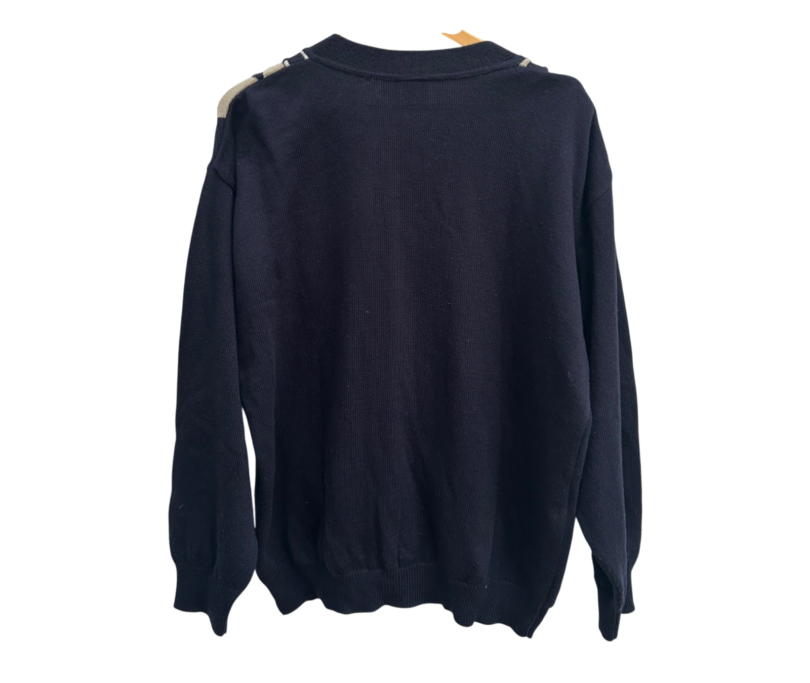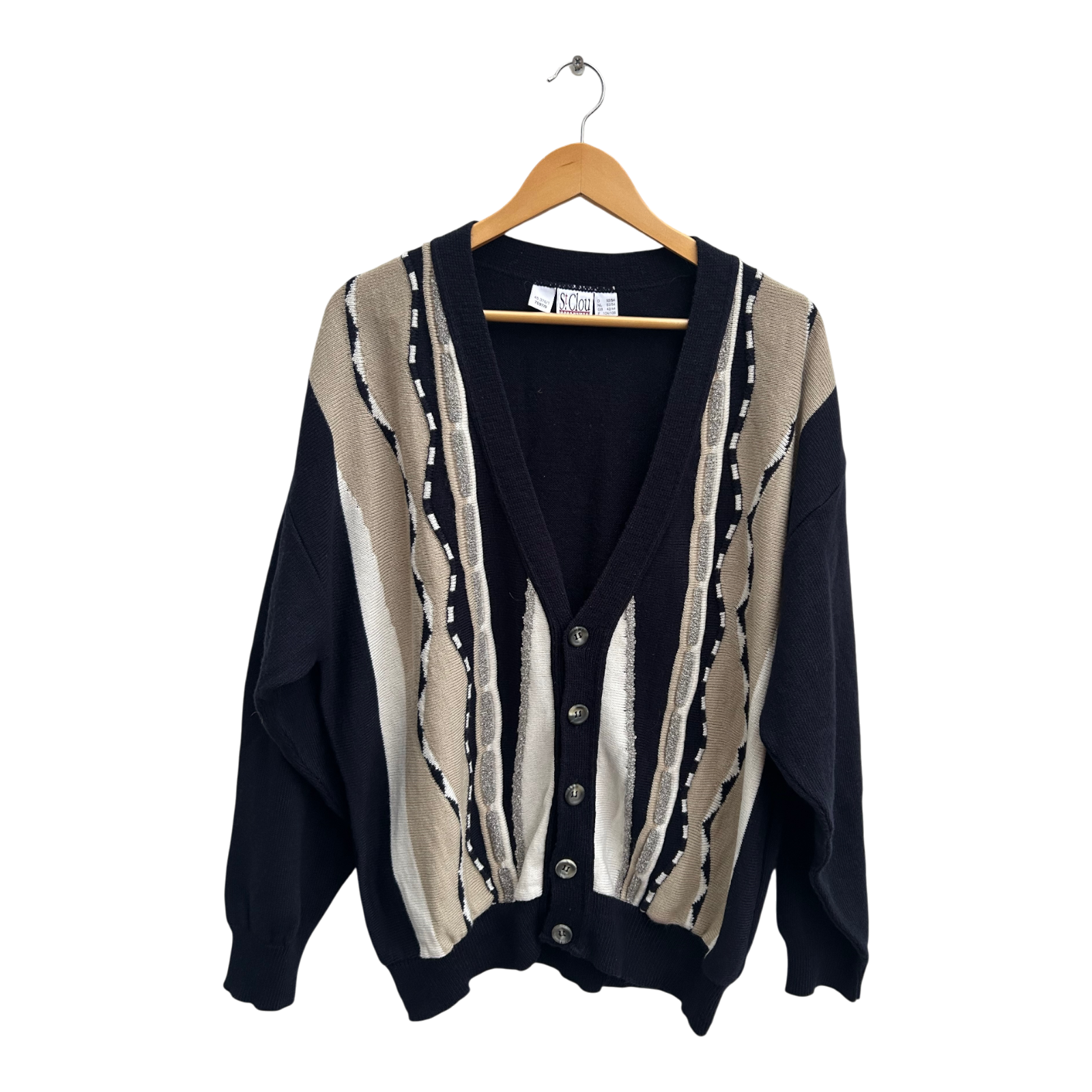 St Clou Strickjacke Herren Gr 52 L Schwarz Beige Vintage Retro Cardigan Wolle Mix