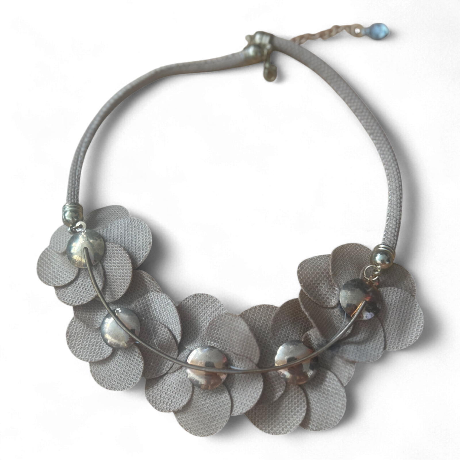 🌺 Stilvolle Statementkette in warmem Braunton mit kunstvoll gearbeiteten Textilblumen! Die Kette besteht aus mehreren stoffbezogenen Blüten – wahlweise mit dekorativen Lagen oder glänzenden Perlen in der Mitte. Der Halsreif ist angenehm weich und flexibel. Der praktische Karabinerverschluss mit Verlängerungskette sorgt für die perfekte Passform. Diese besondere Kette verleiht deinem Outfit einen Hauch Eleganz und eignet sich wunderbar für besondere Anlässe oder als Blickfang im Alltag. ✨