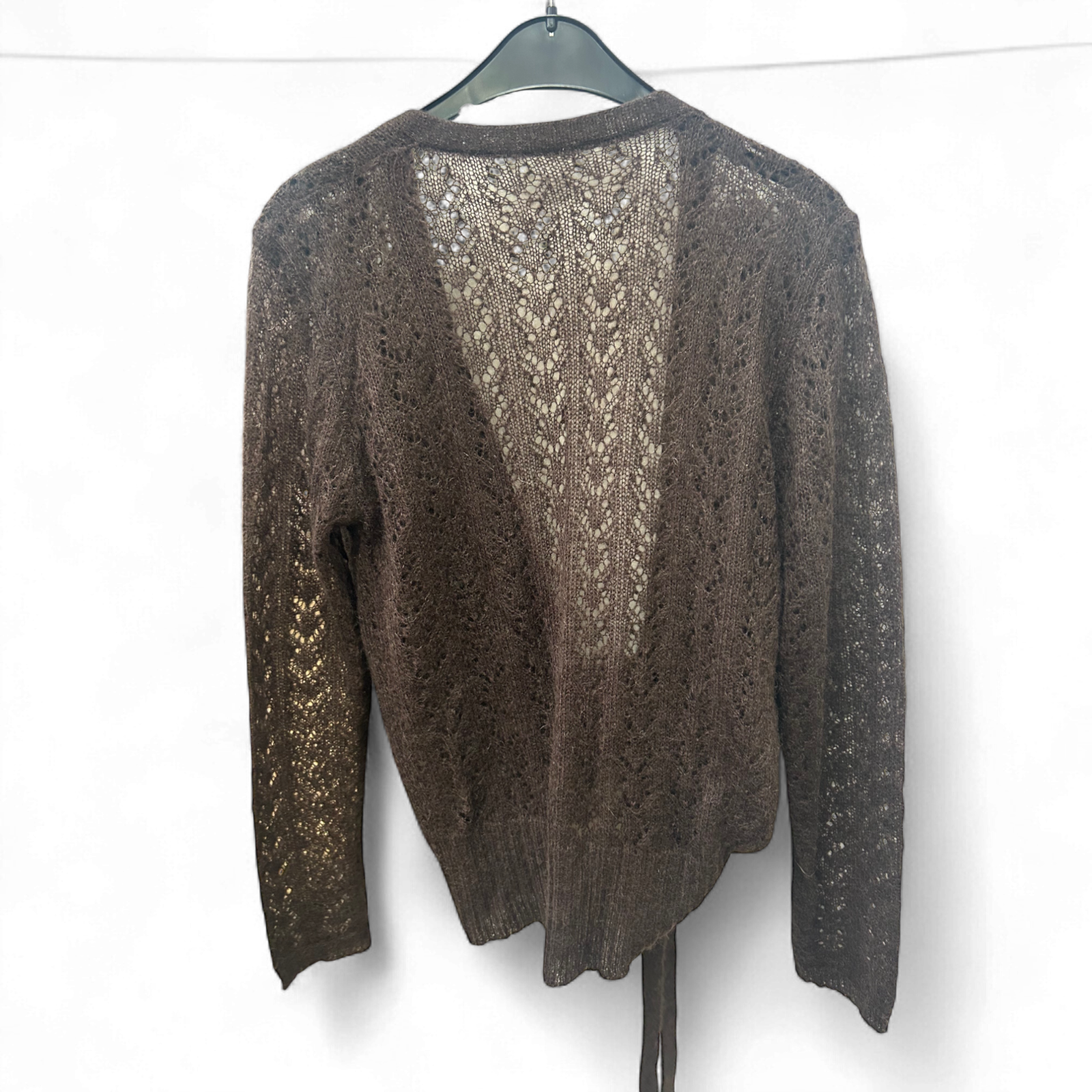 Strickjacke Braun Gr M Häkeloptik Bindegürtel Offen Weich Longsleeve Elegant