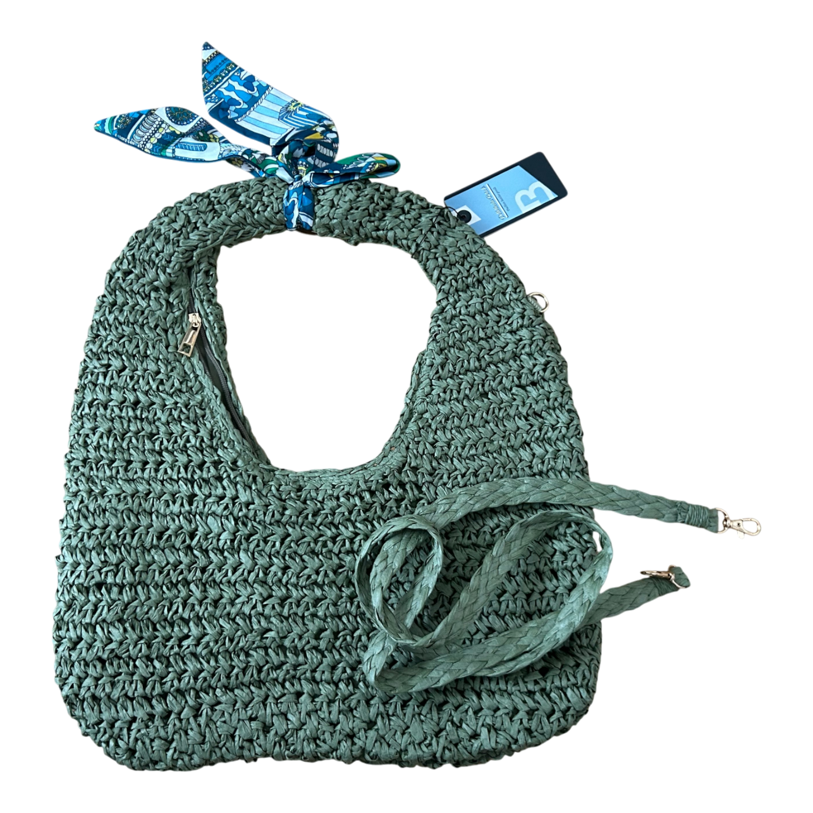 Strohtasche Grün Bast Hobo Bag Schultertasche Sommer Boho Stil Neu mit Etikett
