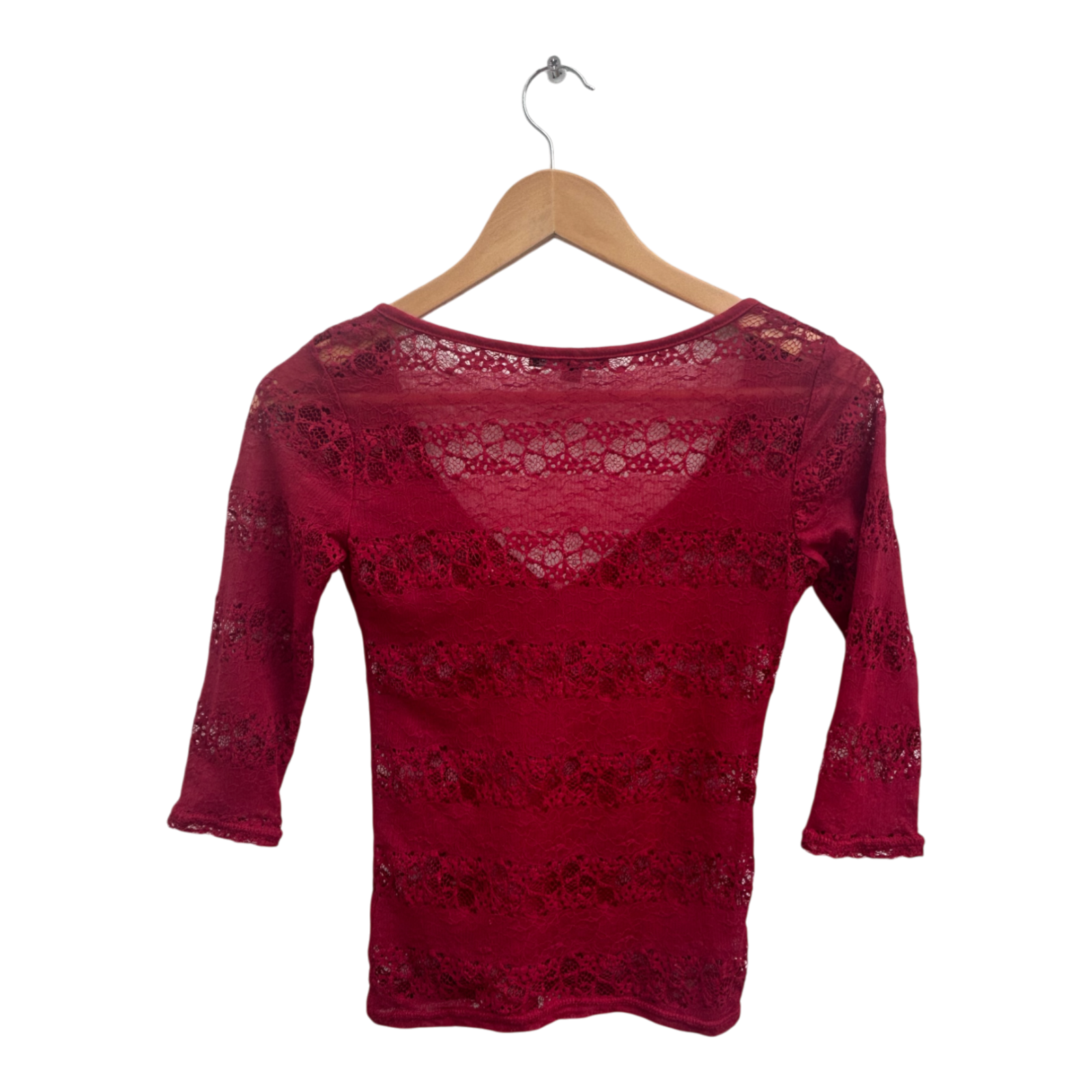 Tally Weijl Damen Shirt XXS Rot Spitze Stretch Oberteil 3 4 Arm Transparent Sexy