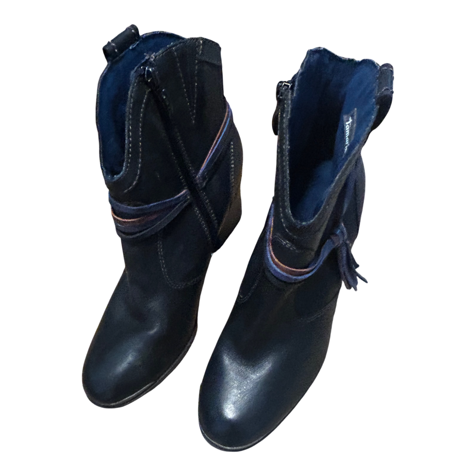 Tamaris Stiefeletten Damen Schuhe Gr 40 Schwarz Leder Blockabsatz Reißverschluss