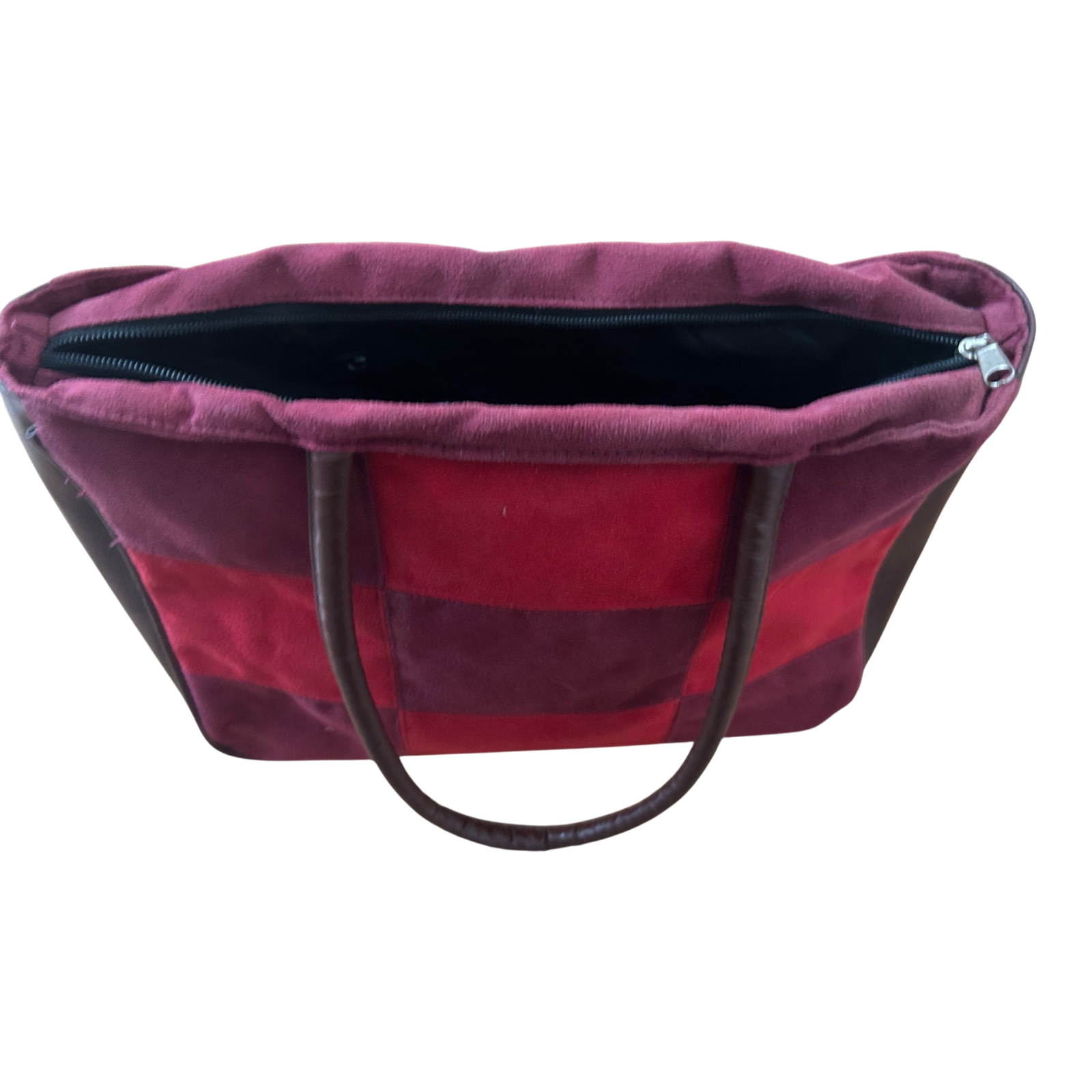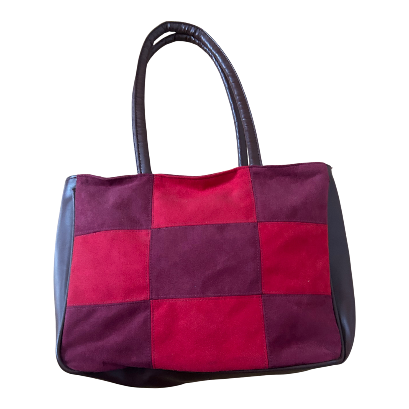 Wunderschöne Tasche in Wildlederoptik mit klassischem Patchwork-Design in Rot- und Brauntönen. Der Materialmix aus Wildlederimitat und Kunststoff sorgt für eine stilvolle Optik bei gleichzeitig geringem Gewicht.