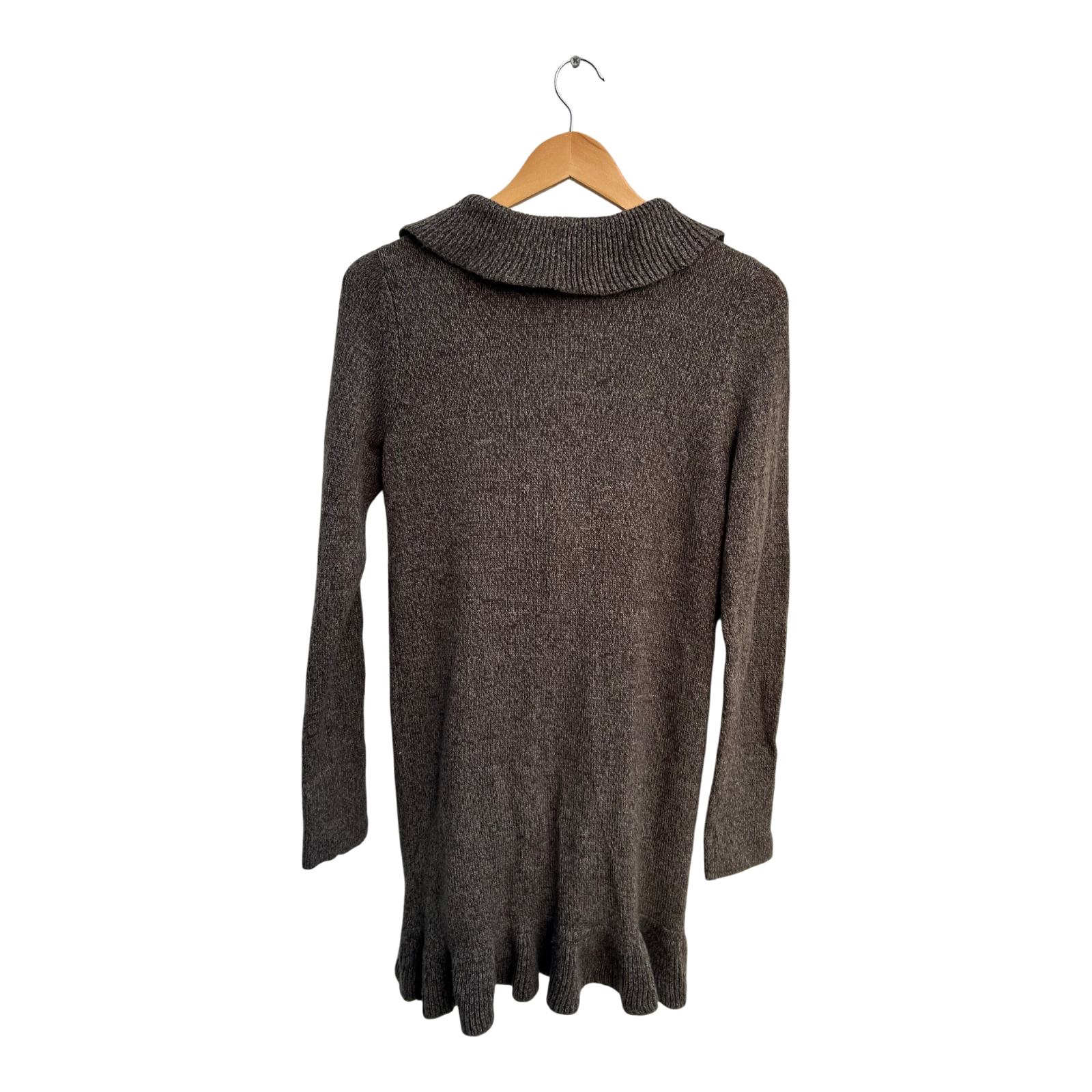 Das Modell überzeugt mit einem verspielten Rüschenrand entlang der Vorderseite und einem Bindegürtel zur individuellen Taillierung. Der weiche Feinstrick mit Wollanteil sorgt für angenehmen Tragekomfort, während der feminine Schnitt die Figur schön betont. Ideal für Büro, Freizeit oder Abendoutfits.