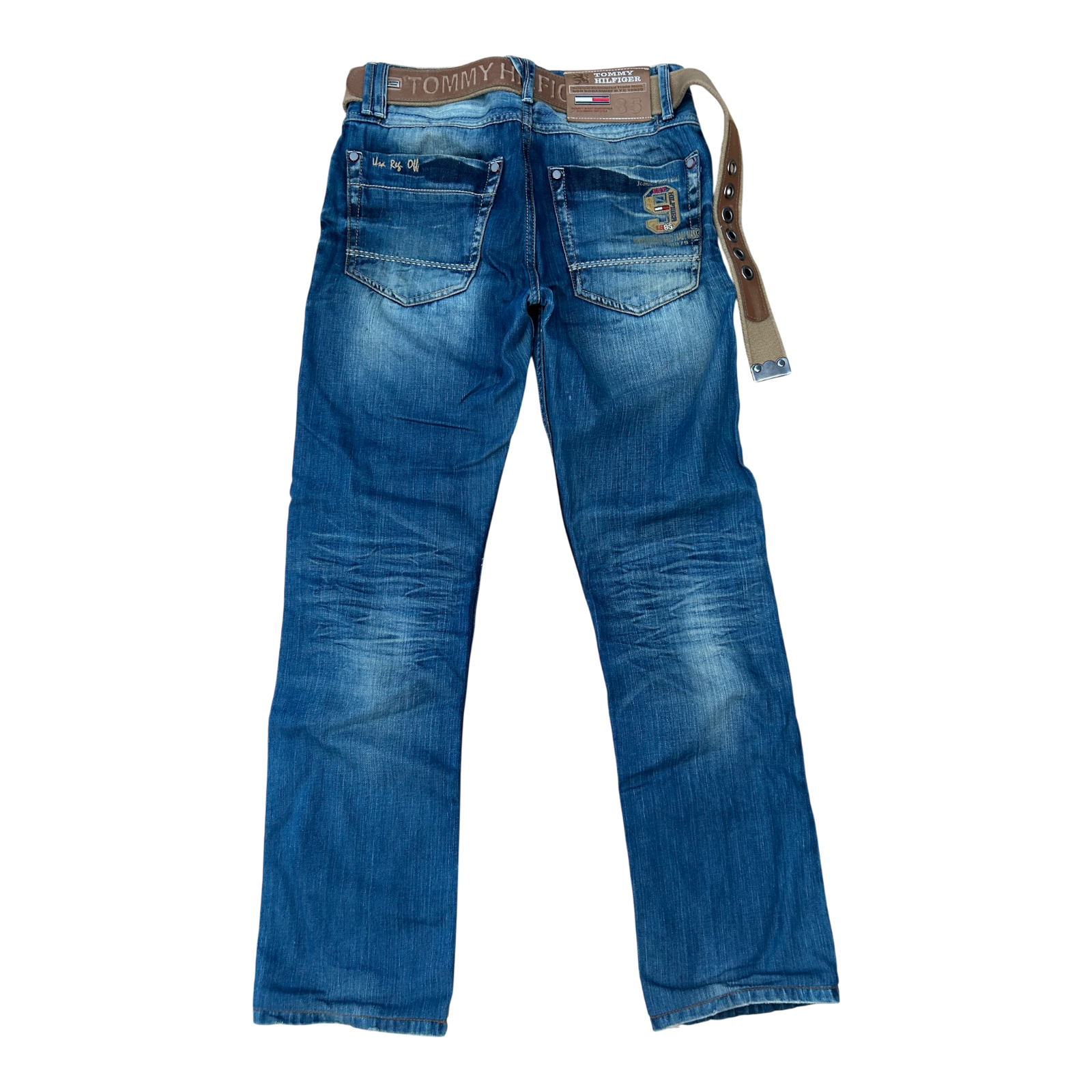 Tommy Hilfiger Jeans Herren Gr 30 Blau Modell 1307 Denim Used Look Gürtel Baumwolle