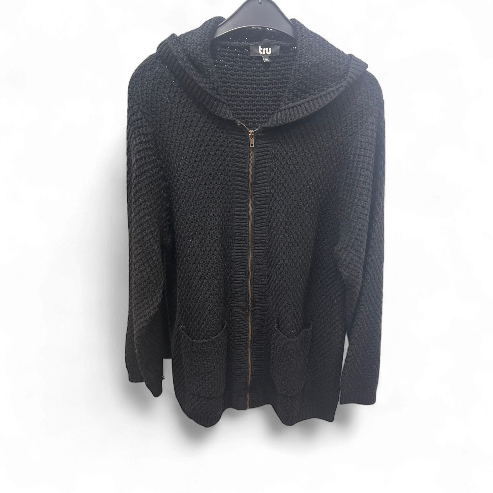 TRU Strickjacke Schwarz Gr XXL Kapuze Reißverschluss Taschen Dick Polyacryl