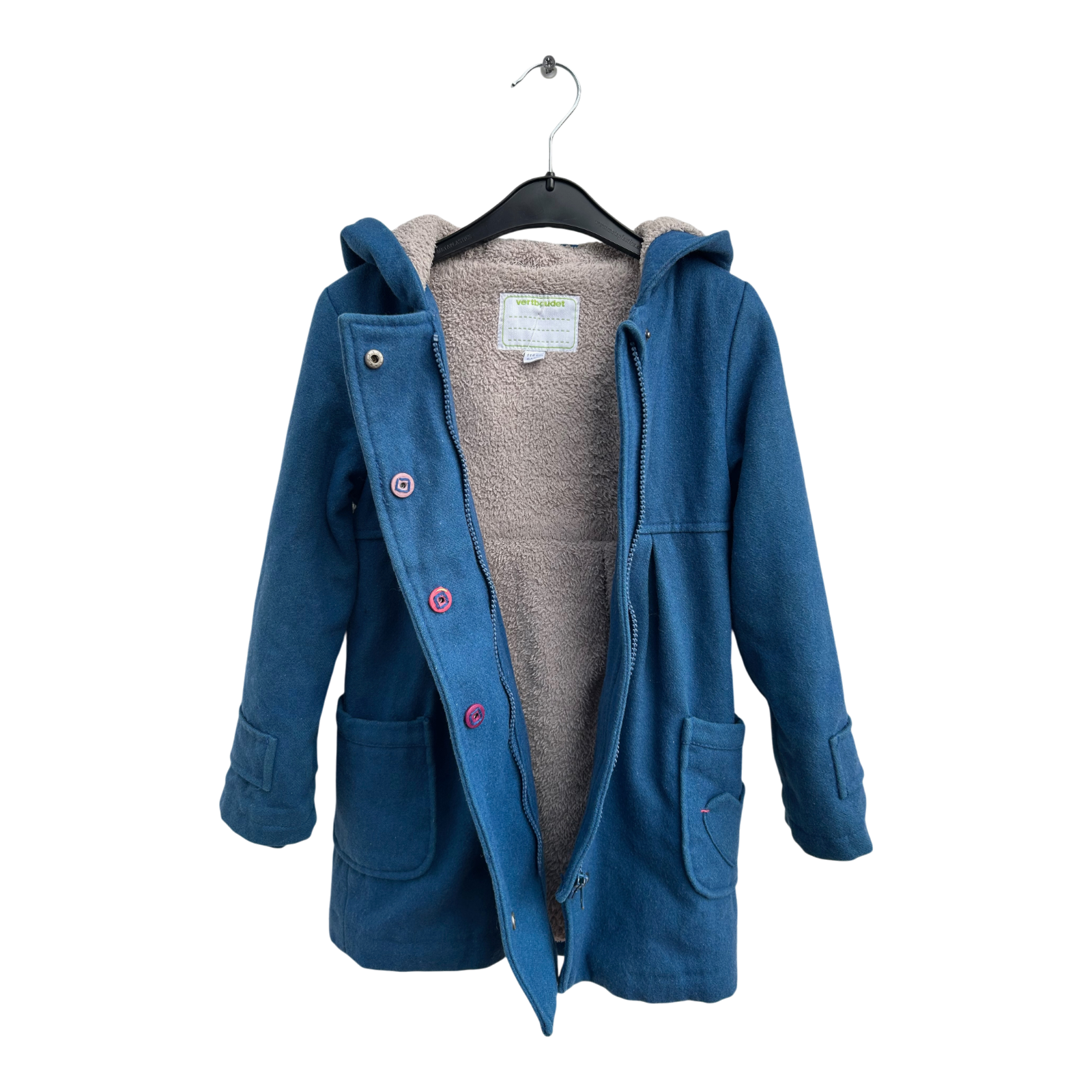 Vertbaudet Wollmantel Kinder Gr 116 Blau Kapuze Dufflecoat Warm Gefüttert Elegant