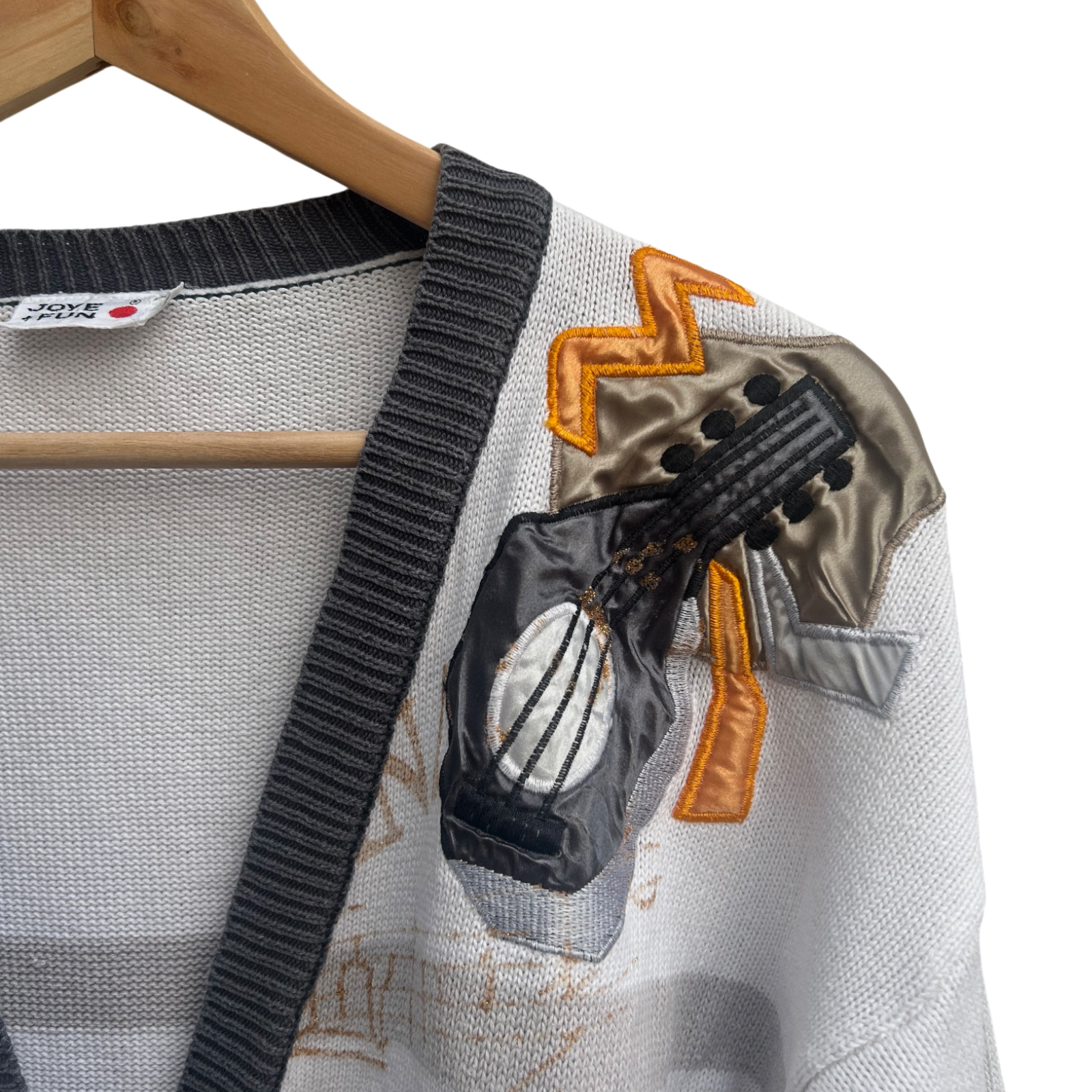 Vintage Herren Strickjacke Joy E Fun Gr M 100 Prozent Cotton Applikationen Retro