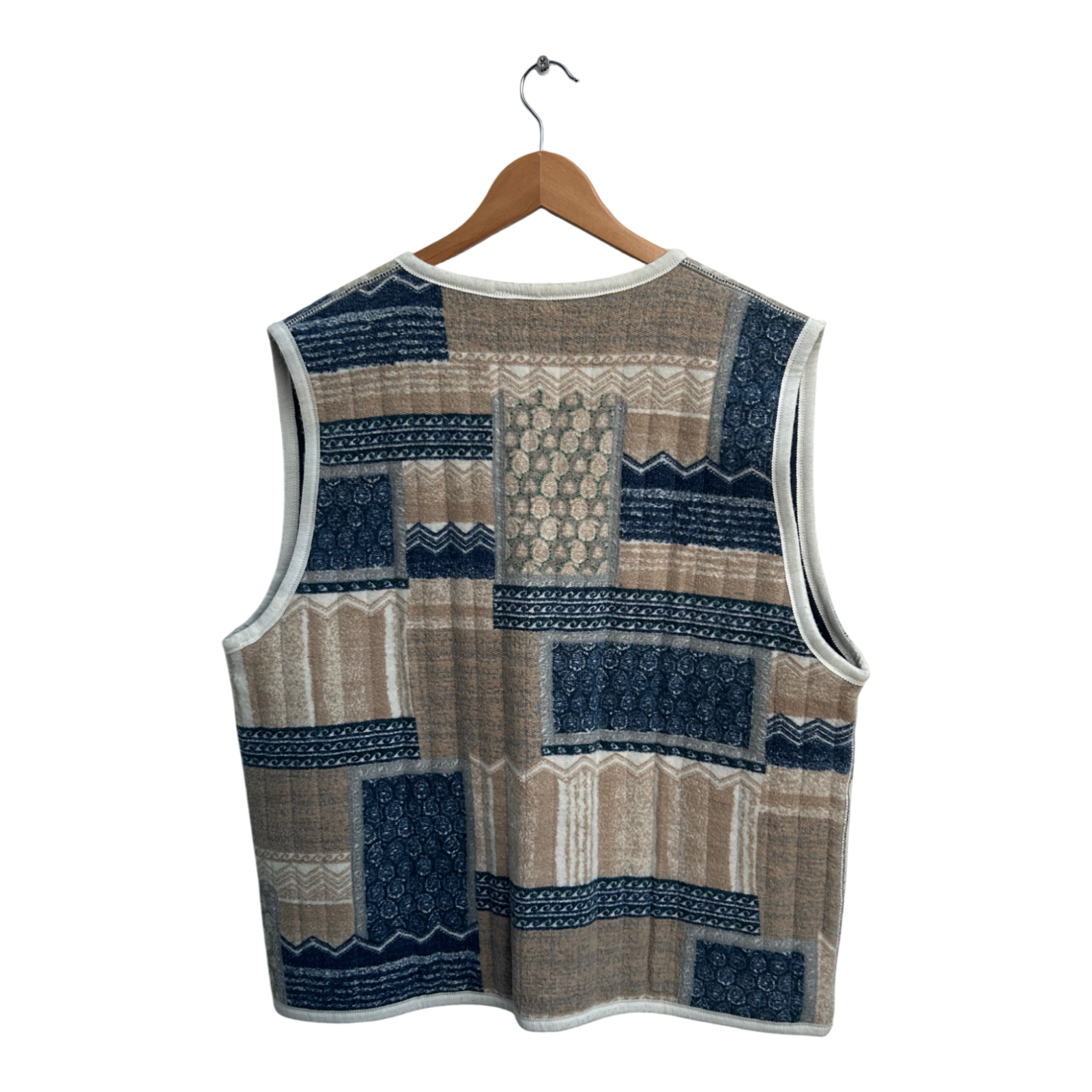 Vintage Wendeweste Damen Gr 44 Beige Blau Patchwork Warm Wolloptik Boho