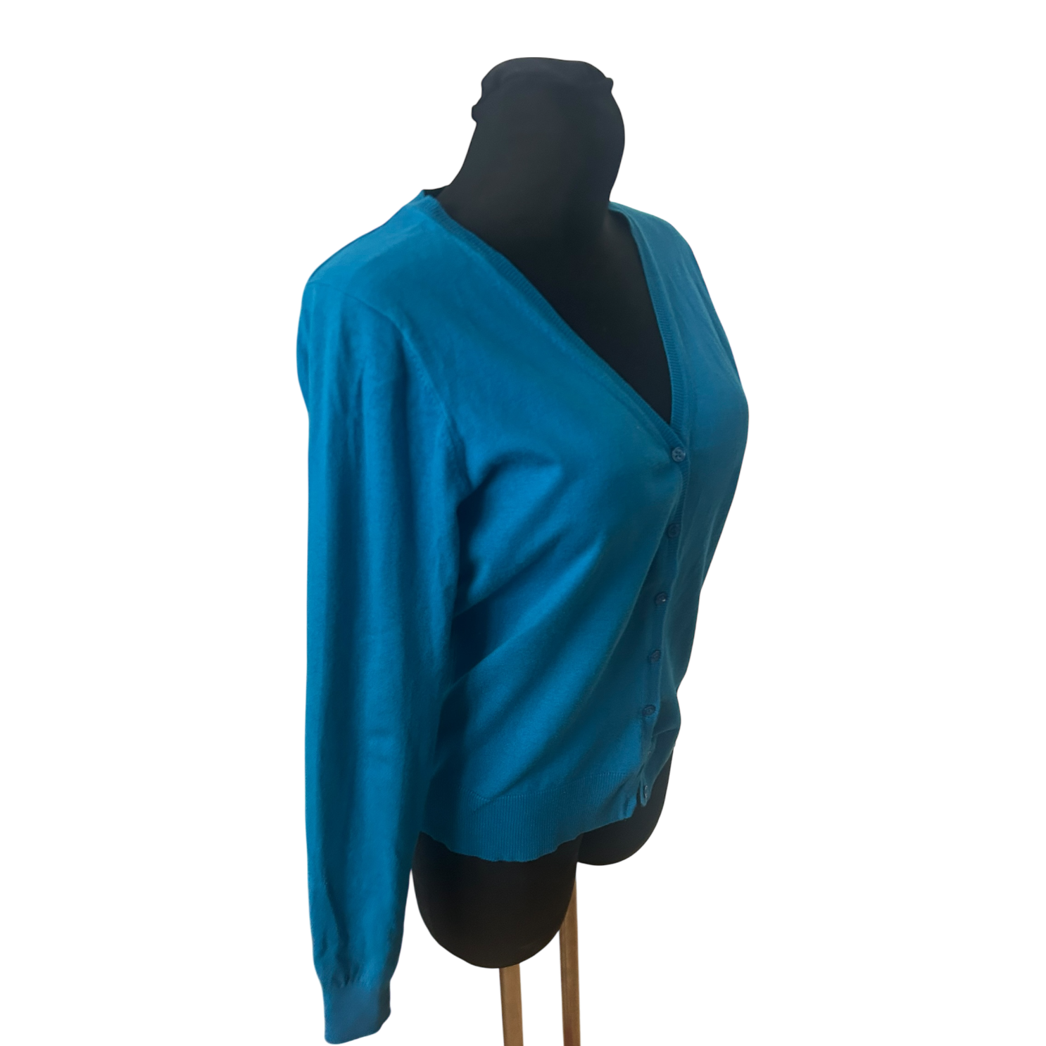 WE Damen Strickjacke Gr M Türkis Blau V-Ausschnitt Baumwollmix Langarm