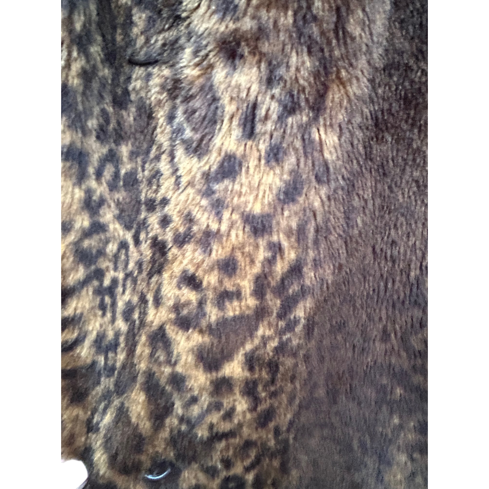 Webpelzmantel Damen Gr 44 Leomuster Warm Kunstfell Braun Elegant Herbst Winter
