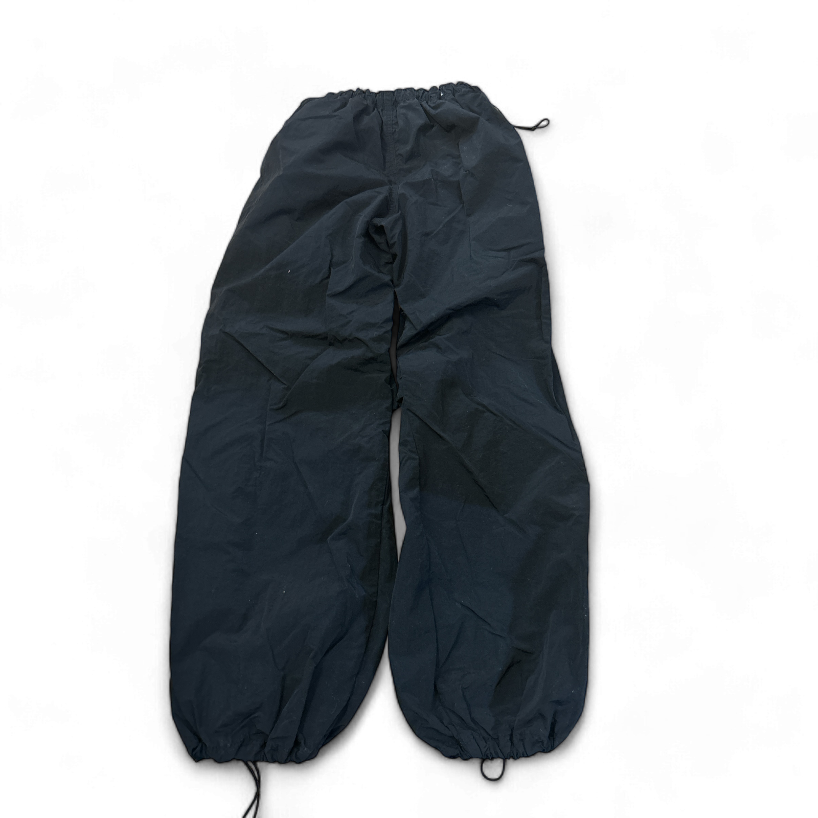 Die Bershka Damen Baggy-Hose in Schwarz, Größe M ist eine weit geschnittene, lässige Hose mit elastischem Bund und Taschen. Sie besteht meist aus Nylon, der bequem und stylisch ist. Ideal für einen entspannten, urbanen Look!