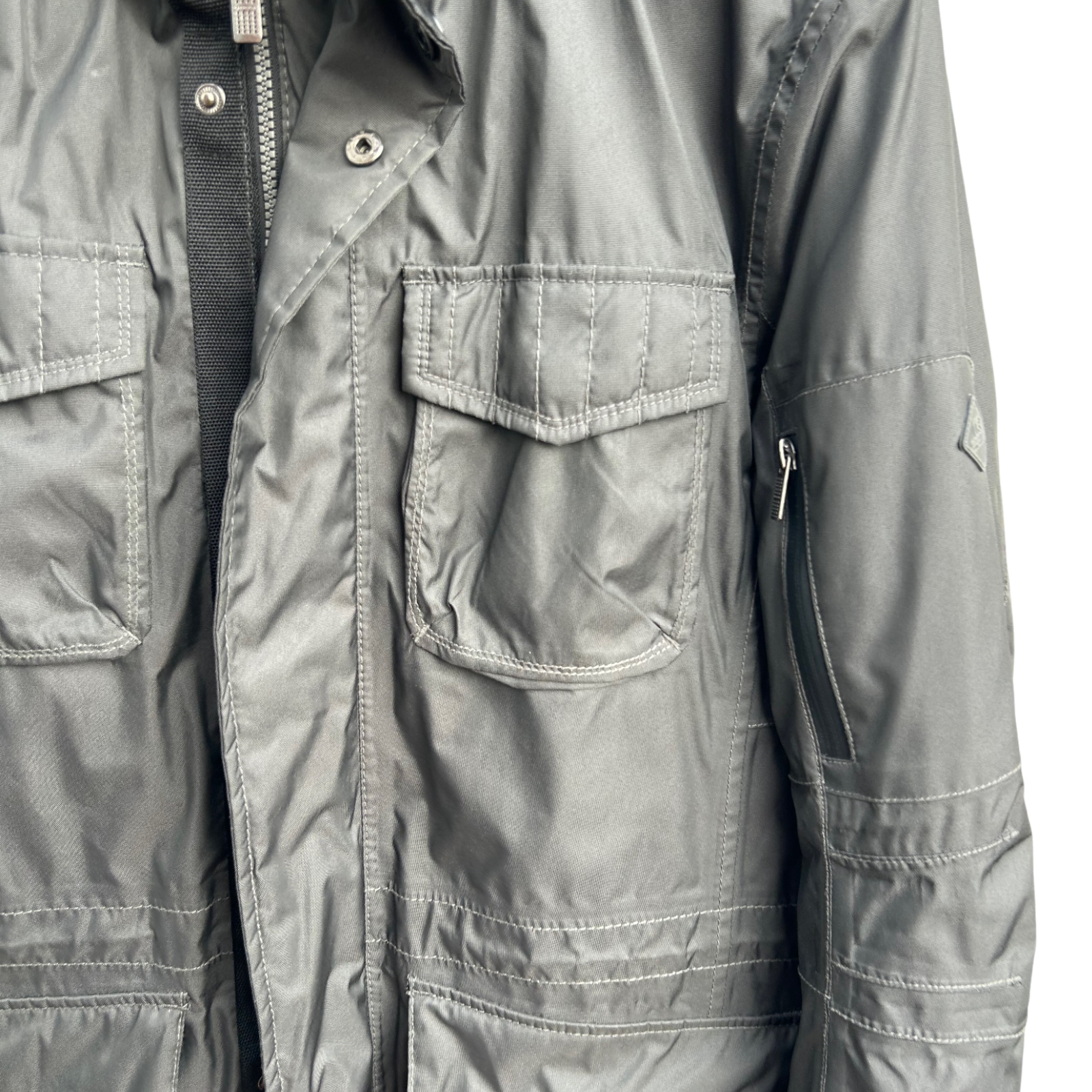 Edle Westbury Raintex All Weather Gear Jacke in Größe 50 und dunklem Grau – ein hochwertiges Modell für jede Witterung. Das Material ist wasserabweisend, winddicht und atmungsaktiv, mit innenliegendem Kordelzug für eine individuelle Passform. Die Jacke ist warm gefüttert und mit zahlreichen Außen- und Innentaschen ausgestattet – praktisch und elegant zugleich.