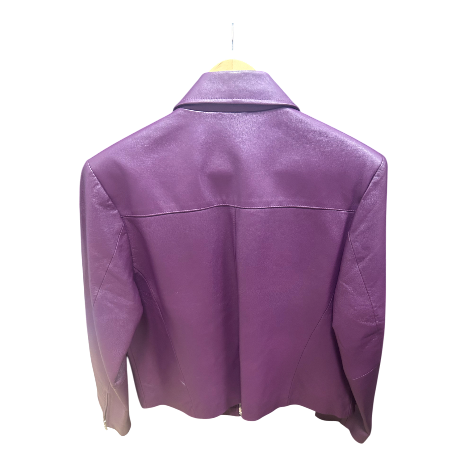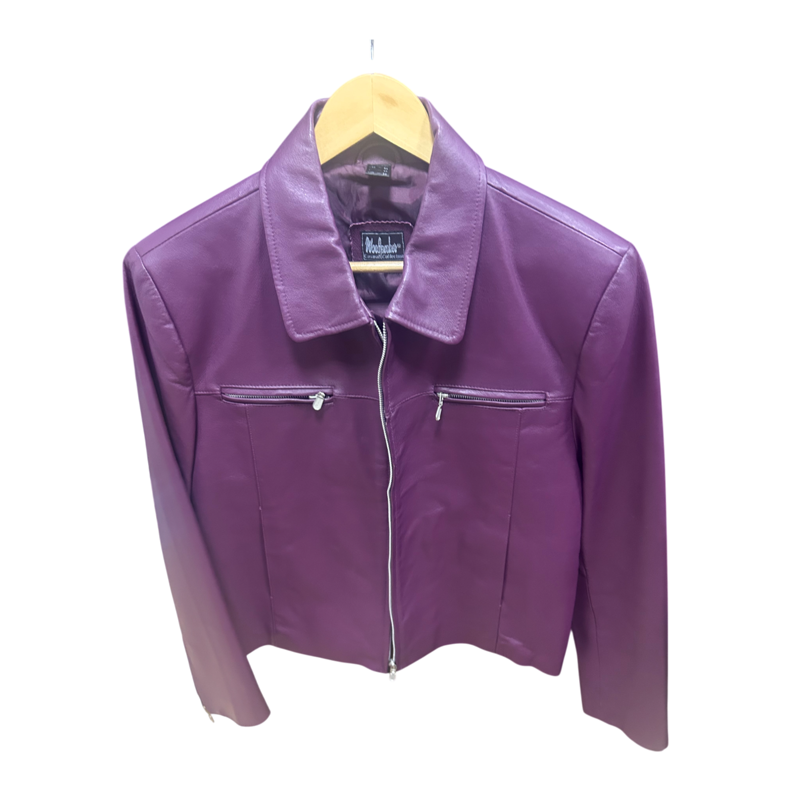 Woodpecker Lederjacke Lila Gr 44 Reißverschluss Echtleder Reißverschlusstaschen Kragen