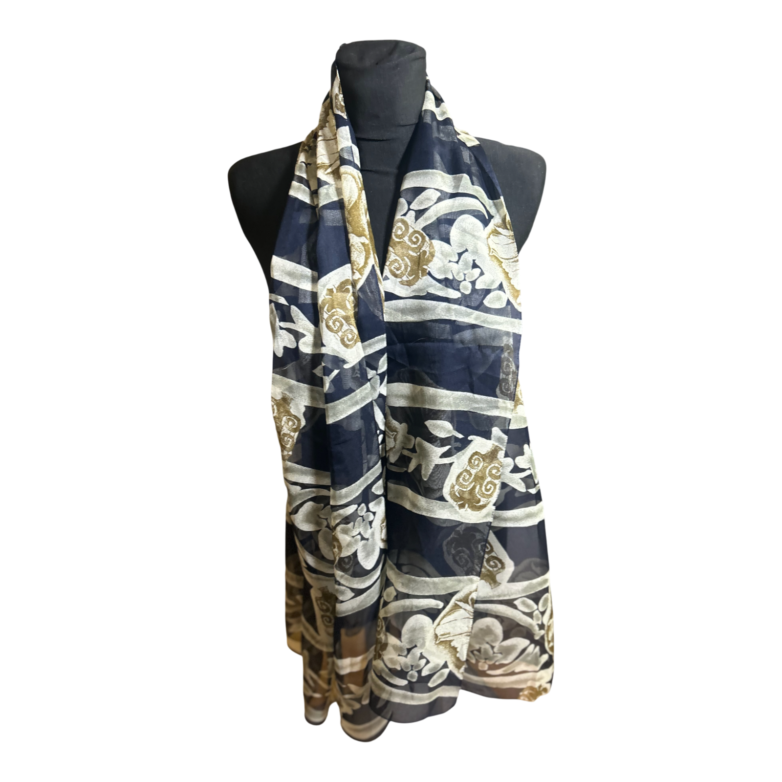 Wunderschöner Damen Schal Blau Beige Muster Elegant Leicht Poly 180 x 80 cm