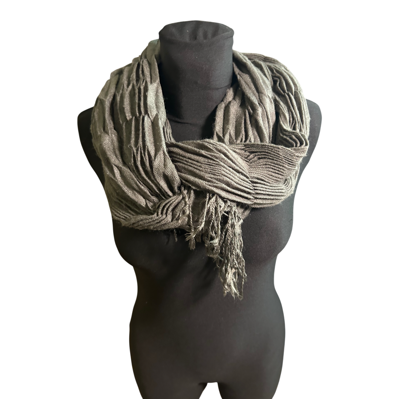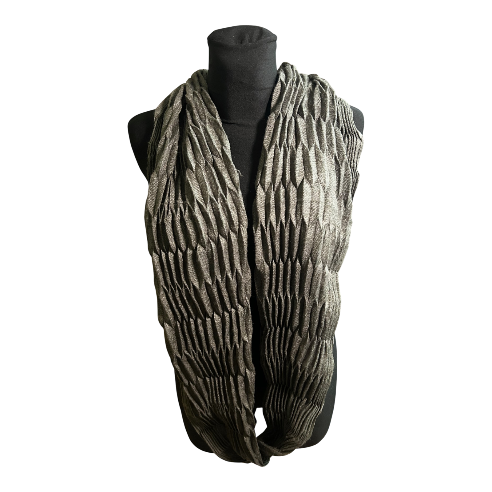 Dieser wunderschöne Loop Schal überzeugt durch seine elegante Plissee-Struktur und den edlen Khaki-Ton, der sich vielseitig kombinieren lässt 🌿.