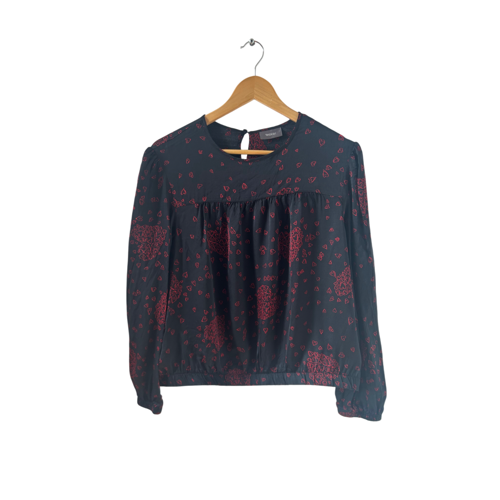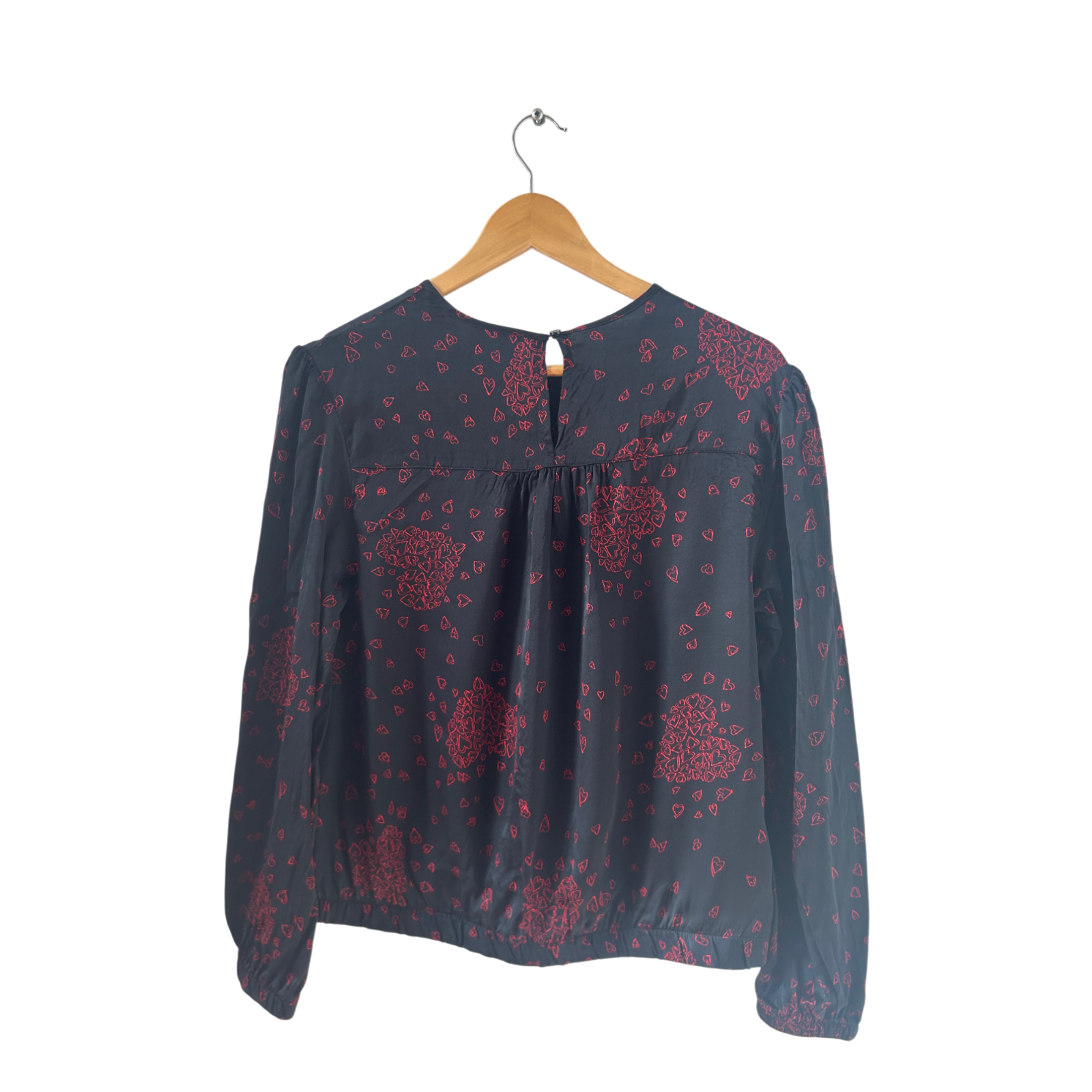 Yessica Bluse Damen Gr 38 Schwarz Rot Herzen Langarm Viskose Gummizug Elegant