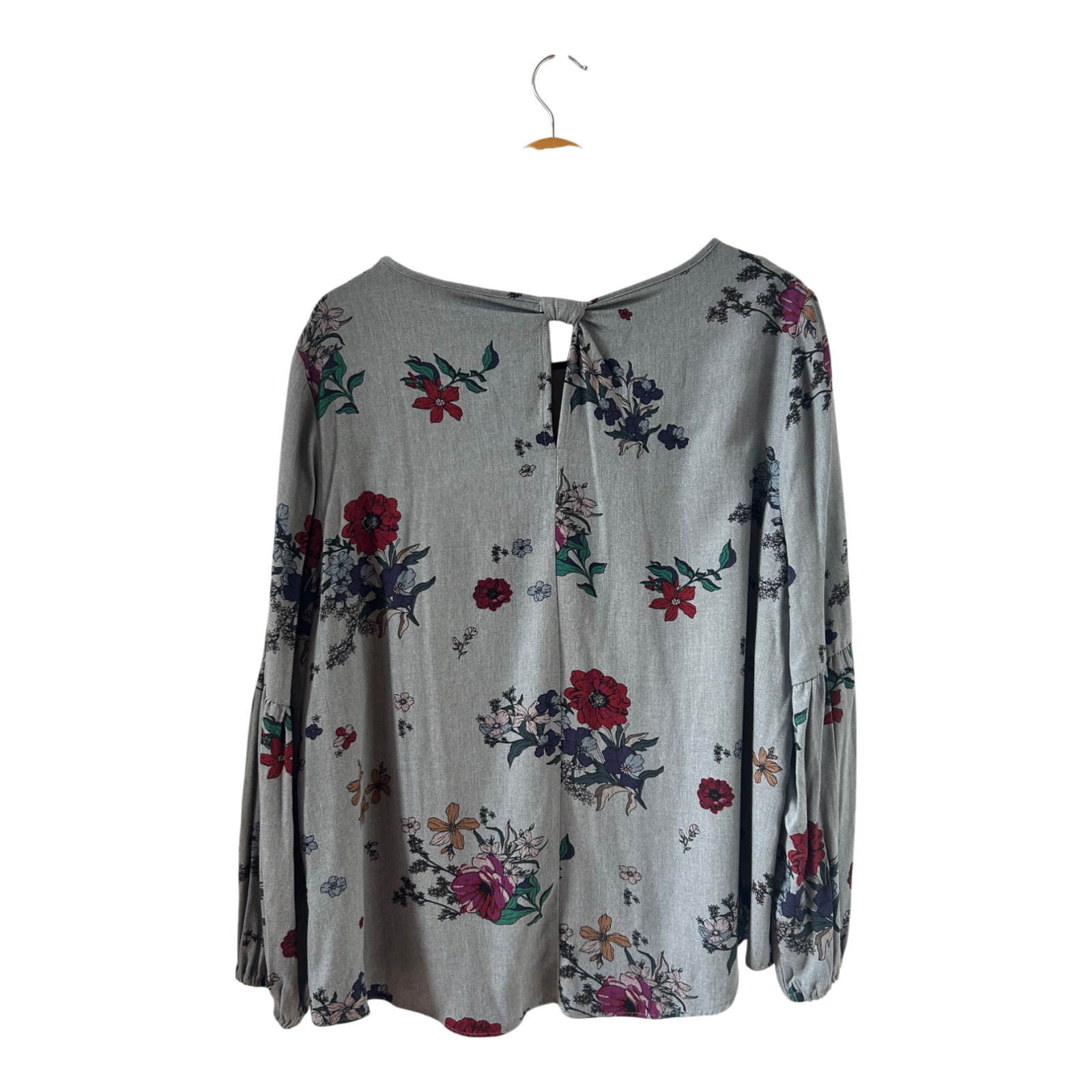 Yessica Bluse grau mit Blumenmuster Gr 46 100 % Viskose locker fallend elegant