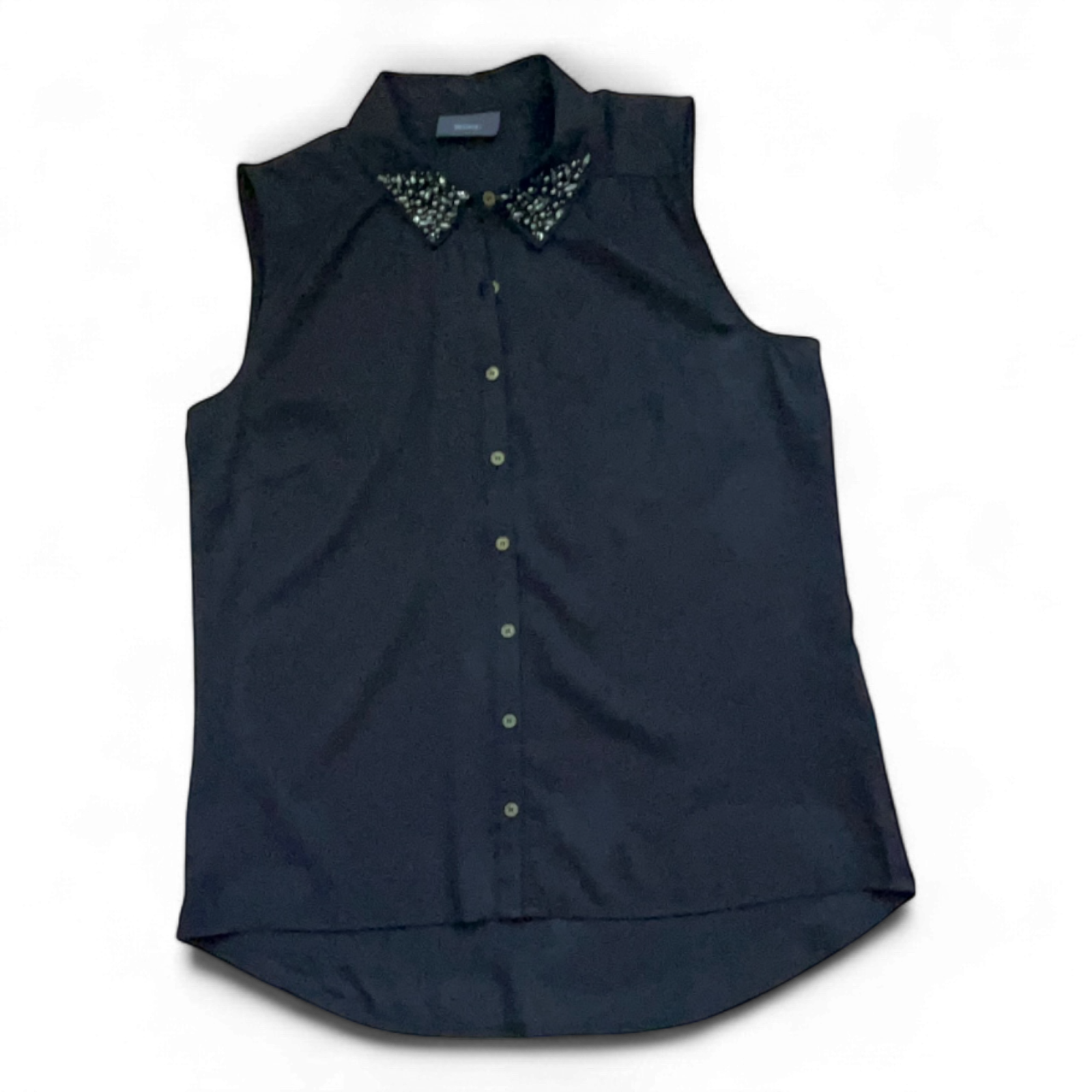 Yessica Damen Bluse Gr. 38 Schwarz Ärmellos Schmuckkragen Elegant Sommer