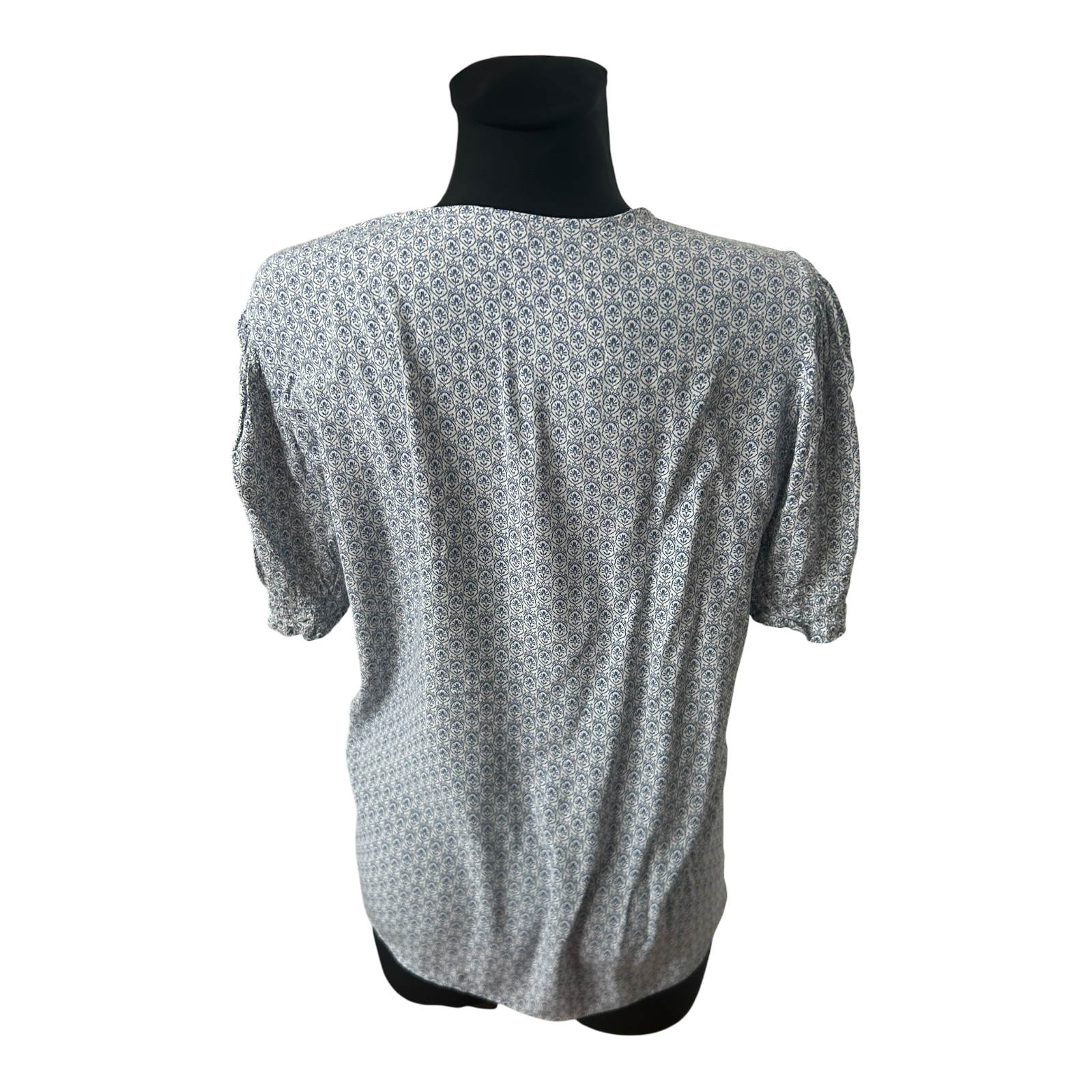 Yessica Damen Bluse Größe 42 Blau Weiß Muster Kurzarm Sommer Viskose Casual