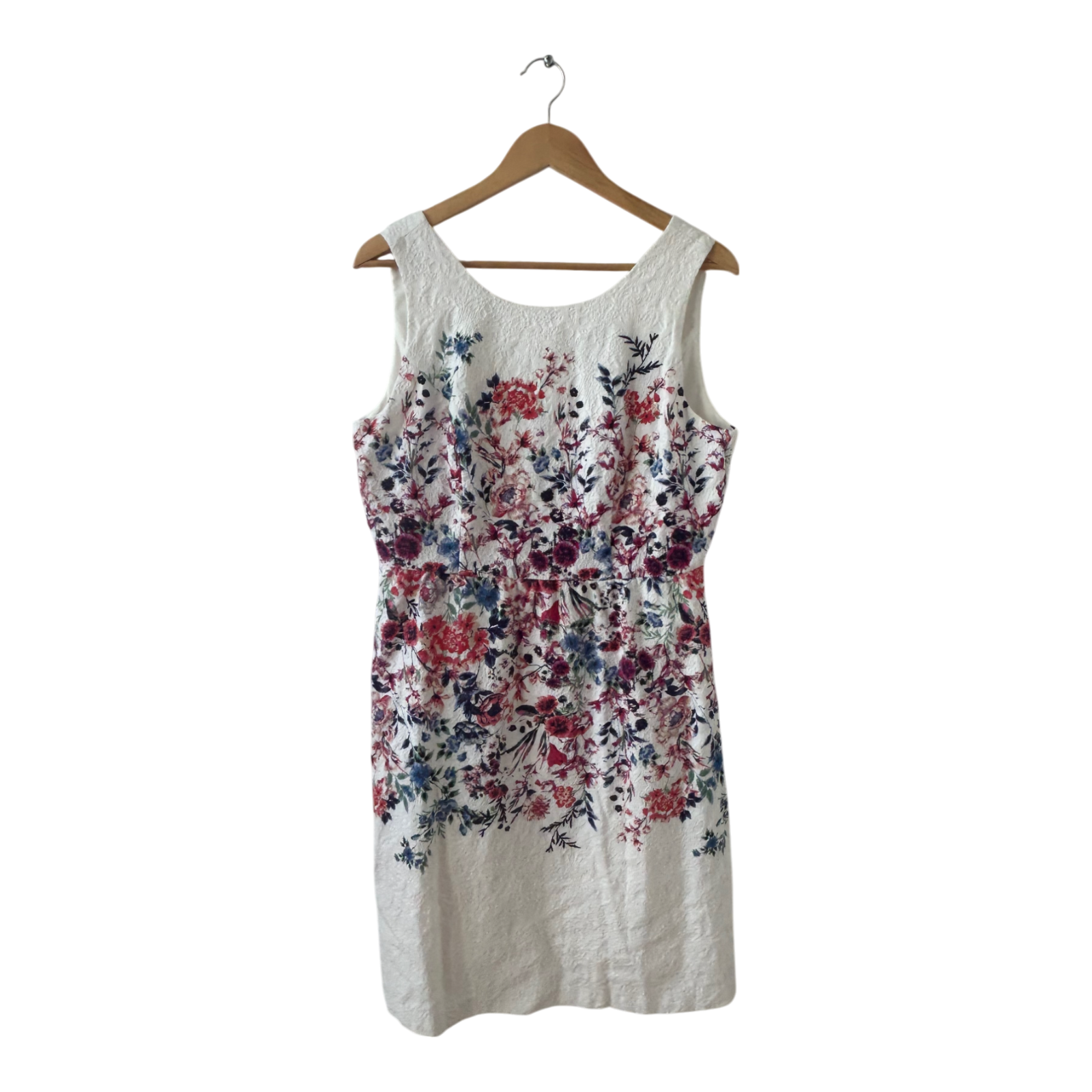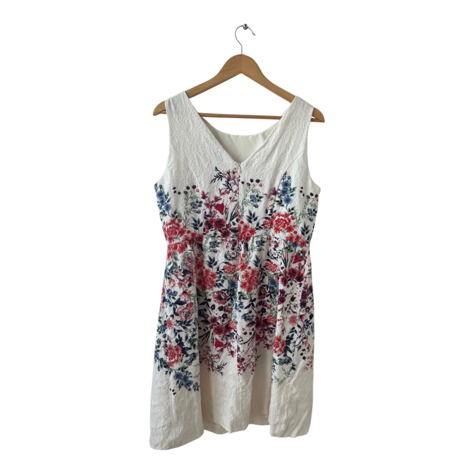 Yessica Kleid Damen Dress Damenkleid Gr. 40 Weiß Blumen Fit Flare Futter Elegant