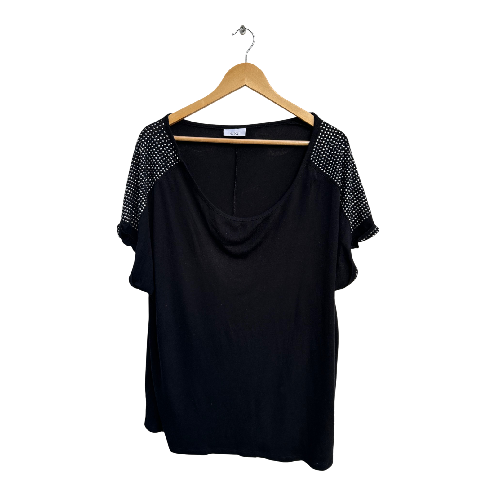 Yessica Shirt Damen Gr 48 Schwarz Nieten Kurzarm Viskose Elastan Elegant Chic