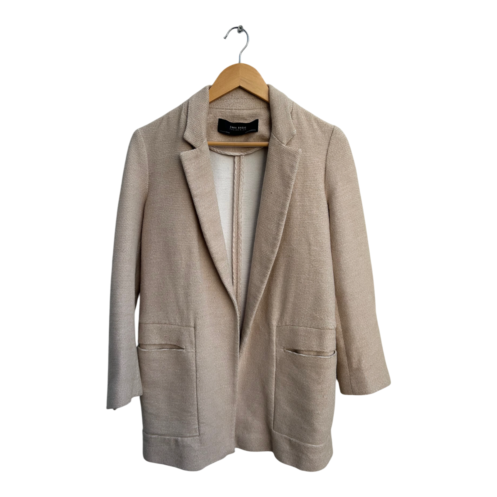 Zara Blazer Damen Gr S Beige Basic Collection Leinen Baumwolle Elegant Jacke Chic