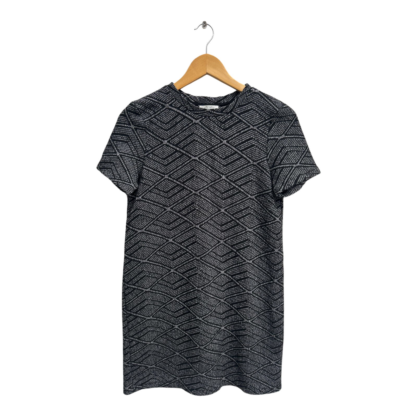 Zara Kleid Damen Gr S Schwarz Weiss Muster Kurz Baumwollmix Elegant Klassisch Stretch