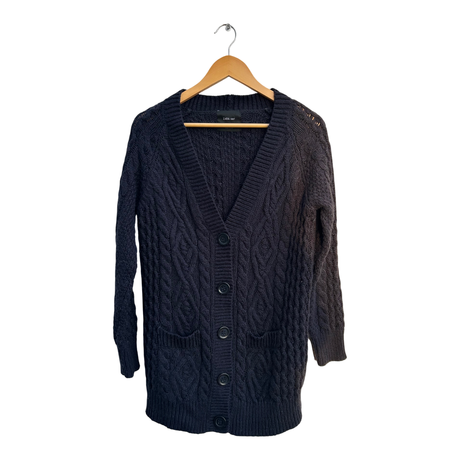 Zara Knit Strickjacke Damen Gr L Dunkelblau Wollmix Grobstrick Mit Taschen